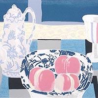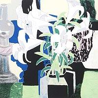 「果実のある卓上」松田環による直筆サイン入りのリトグラフです。 作品に退色がございます。 1949年北海道に生まれ、愛知県立芸術大学油画科で笠井誠一の教室で学びました。1976年愛知県立芸術大学大学院修了。1977年日洋展日洋賞、日展中日賞。1981年函館大中山中学校壁画制作。1998年タカシマヤ美術賞。個展・グループ展多数開催。現在、立軌会同人。2026年美術市場に号6万円で掲載。