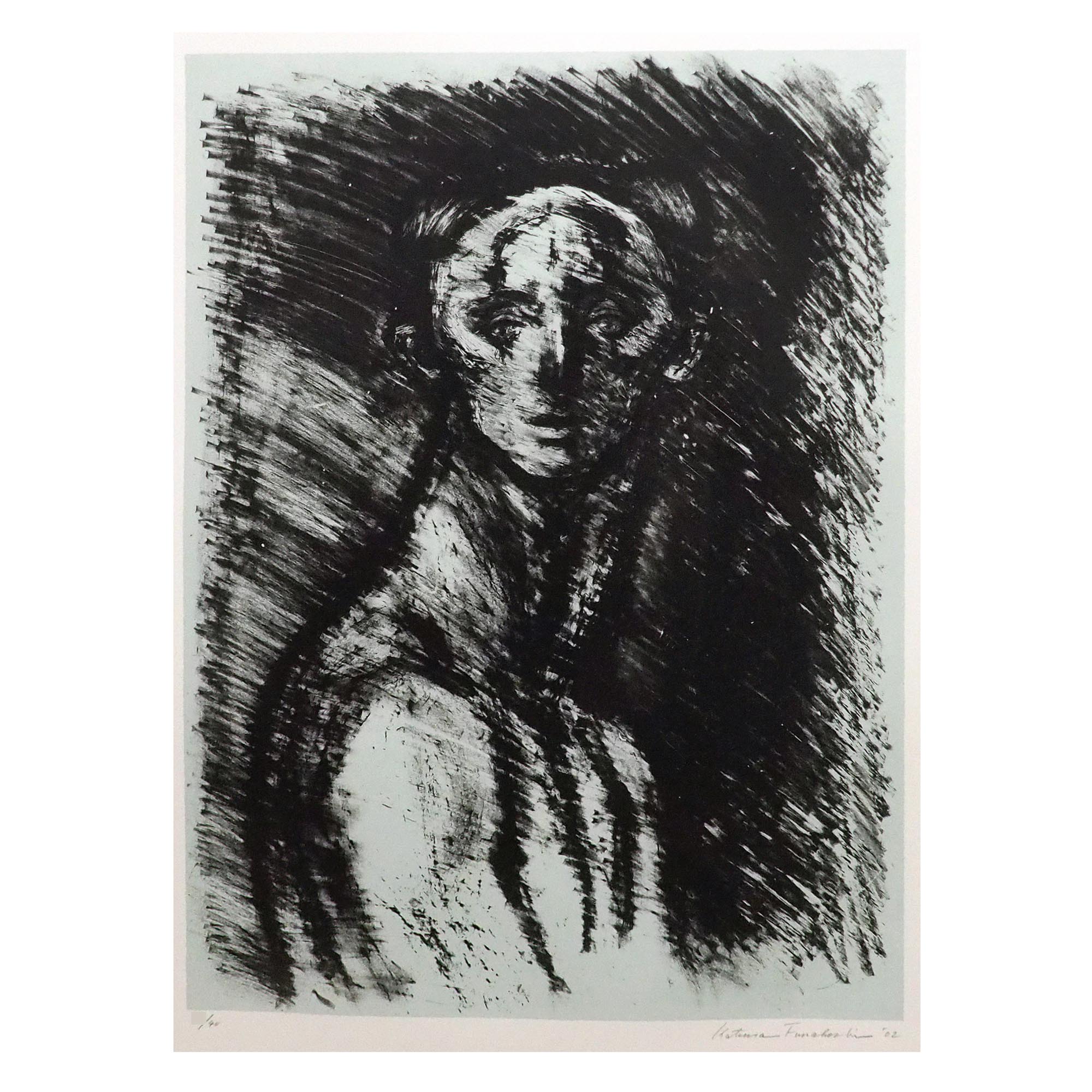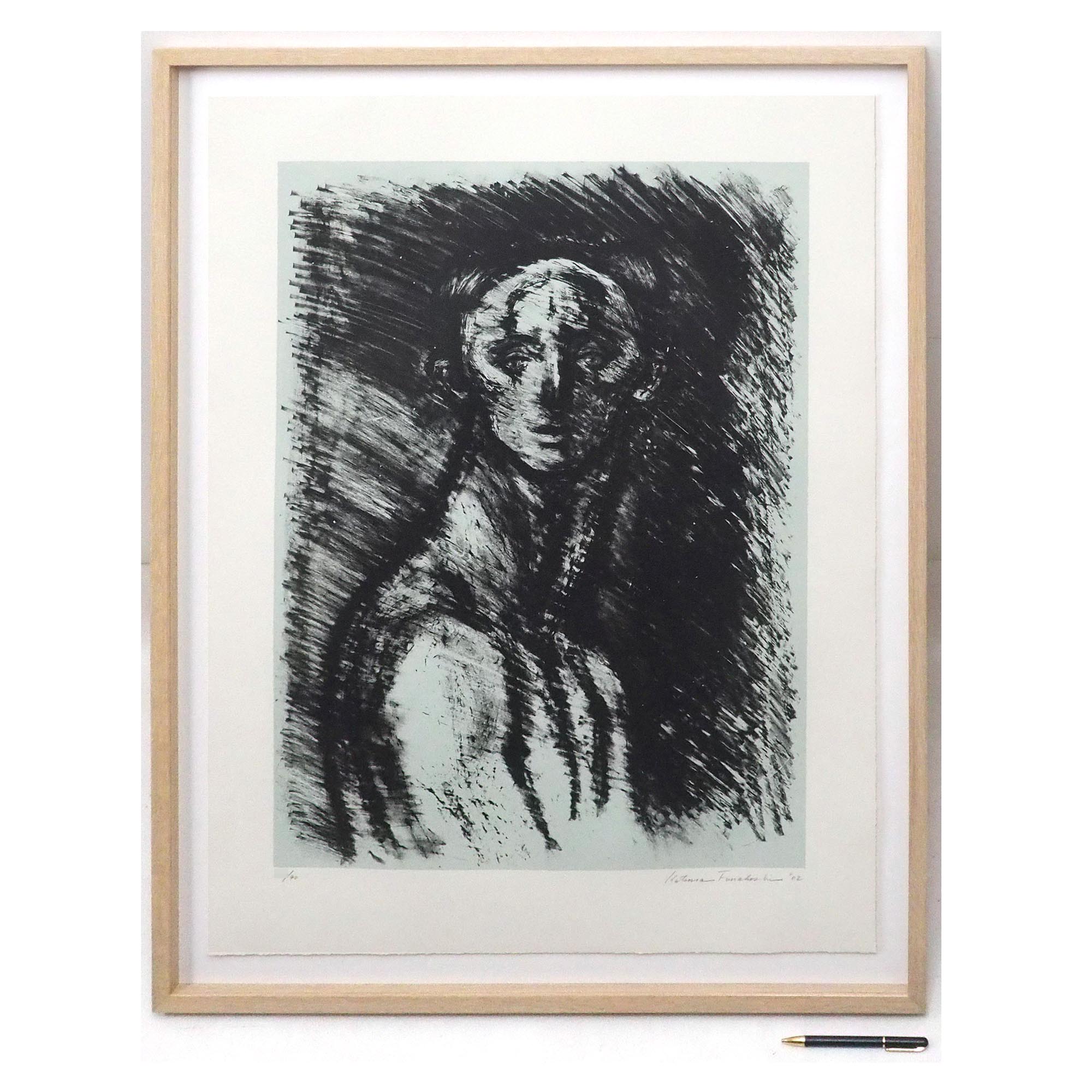 「街へ帰る豹」舟越桂による2002作、直筆サイン入りのリトグラフです。