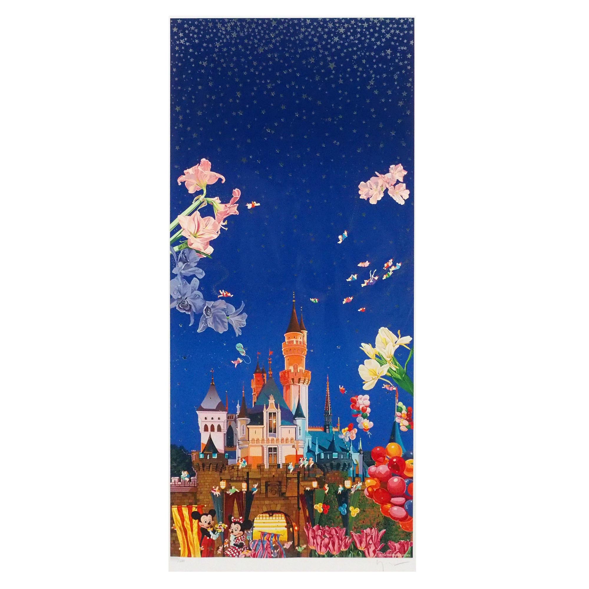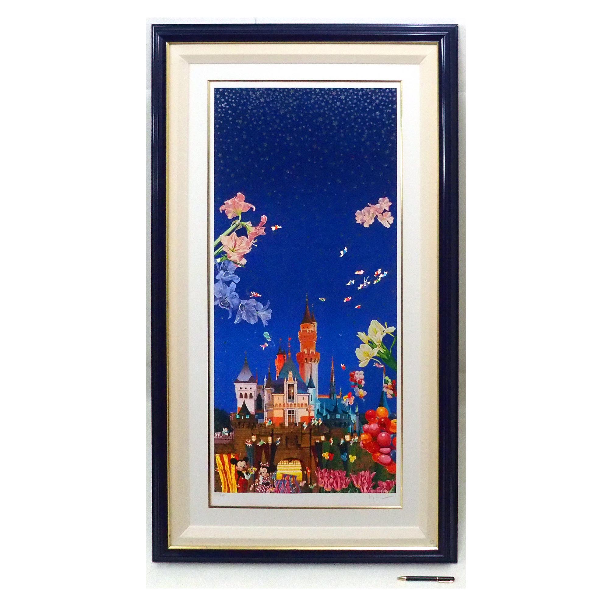 「イブニング オブ ディズニーランド」ヒロヤマガタ(山形博導)による直筆サイン入りのシルクスクリーン、縦長の大型作品です。