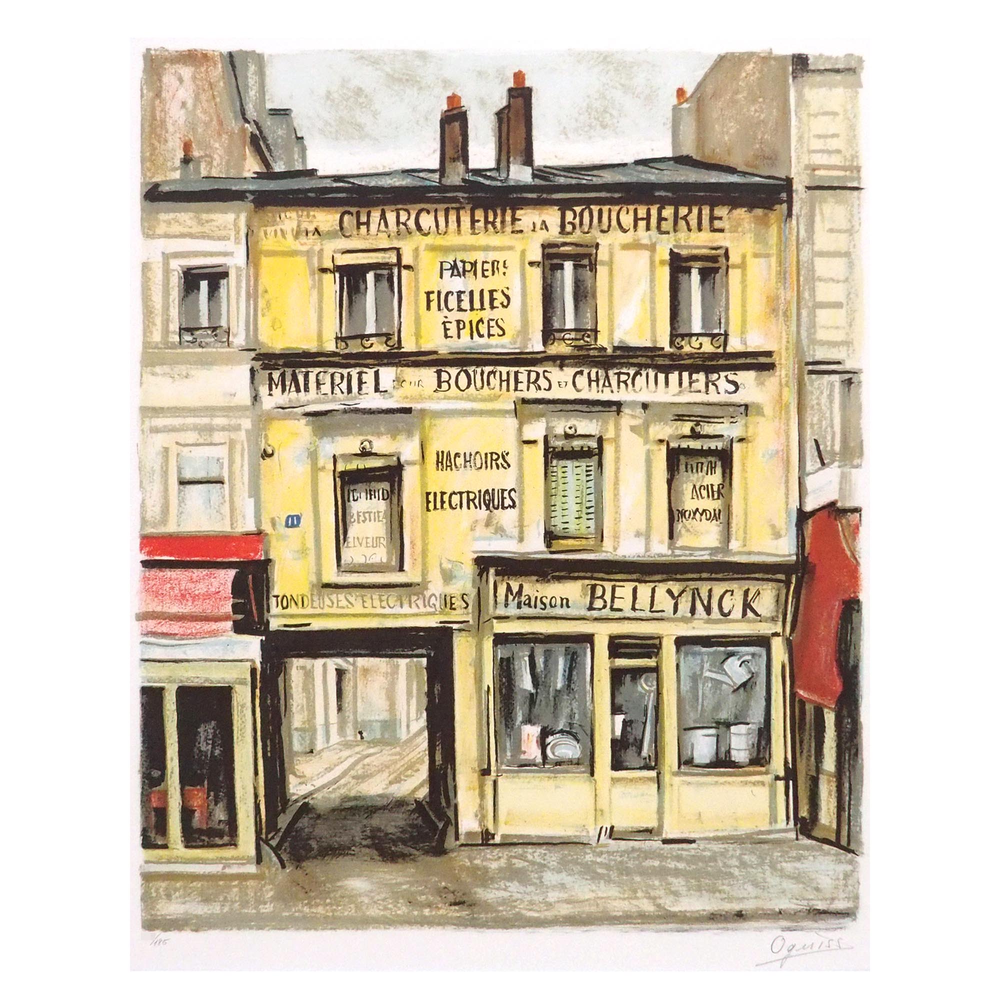 「黄色い店」荻須高徳による1985年作、直筆サイン入りのリトグラフで、「LITHOGRAPHIES et TAPISSERIES 1967-86」No.136掲載作品です。