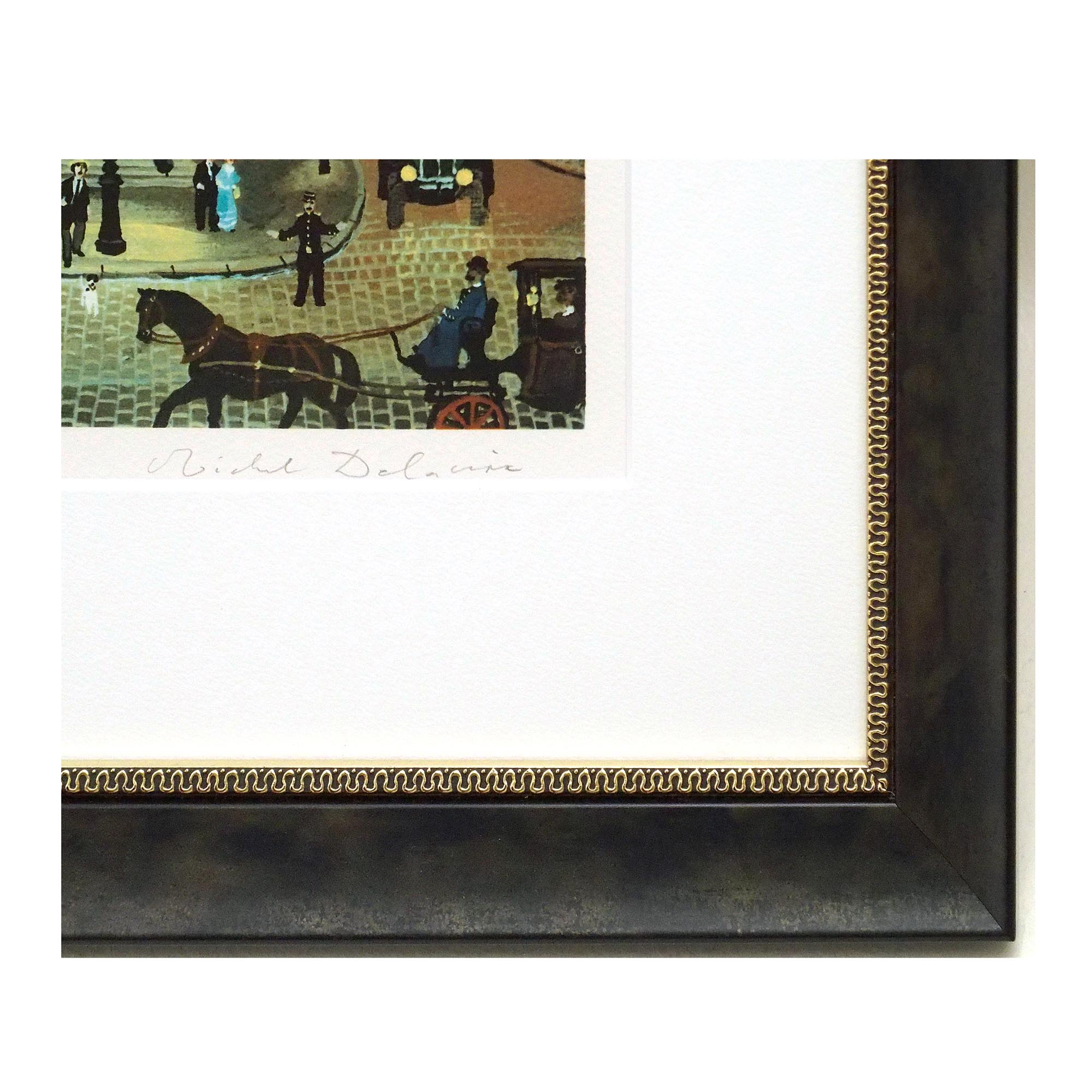 「恋人たちの一日 黄昏時のオペラ座」ミッシェル・ドラクロワによる直筆サイン入りのリトグラフ、飾りやすいサイズの作品です。