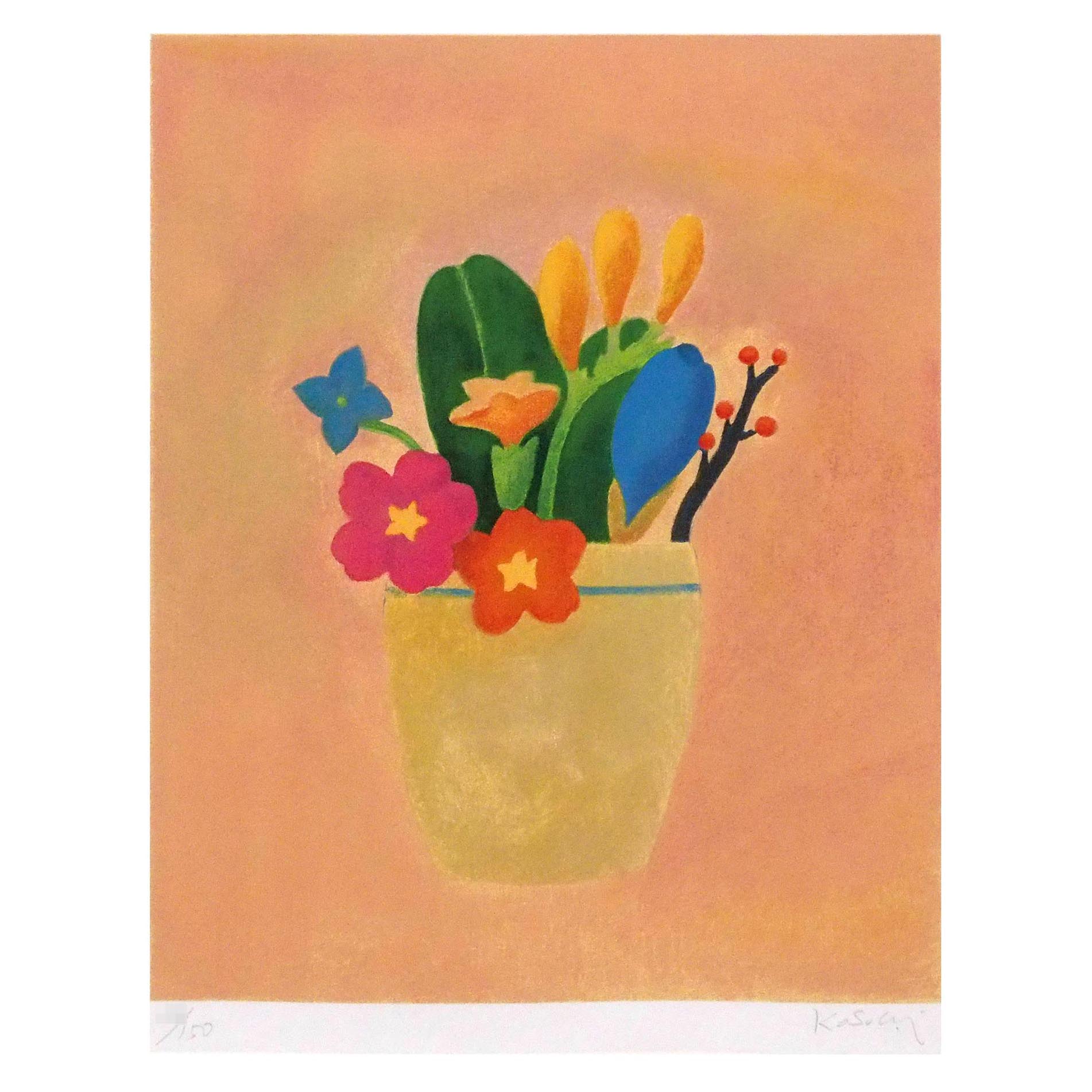 「(サンレミの春の花)」小杉小二郎による直筆サイン入りのリトグラフ、飾りやすいサイズの作品です。