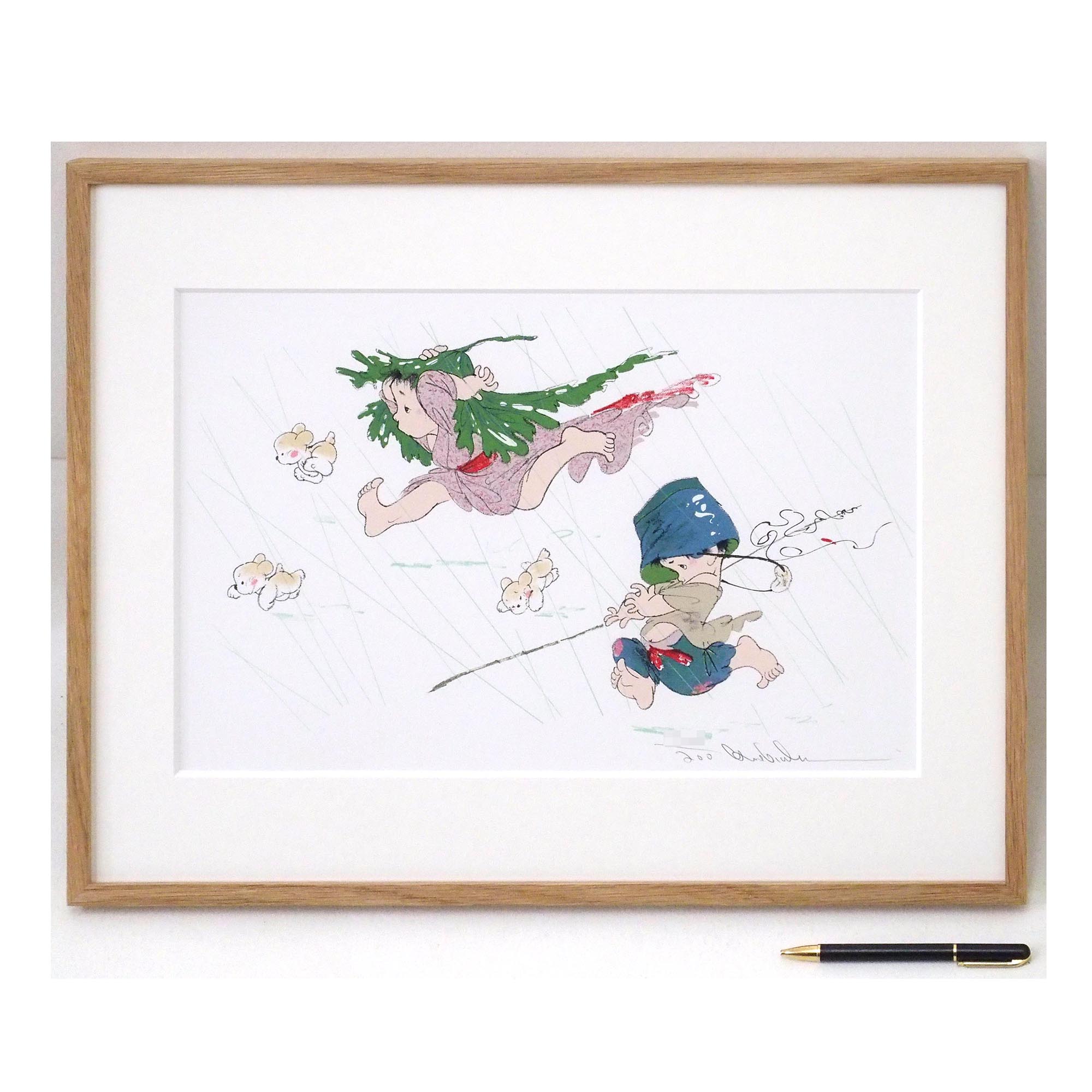 「にわか雨」中島潔による直筆サイン入りのリトグラフです。