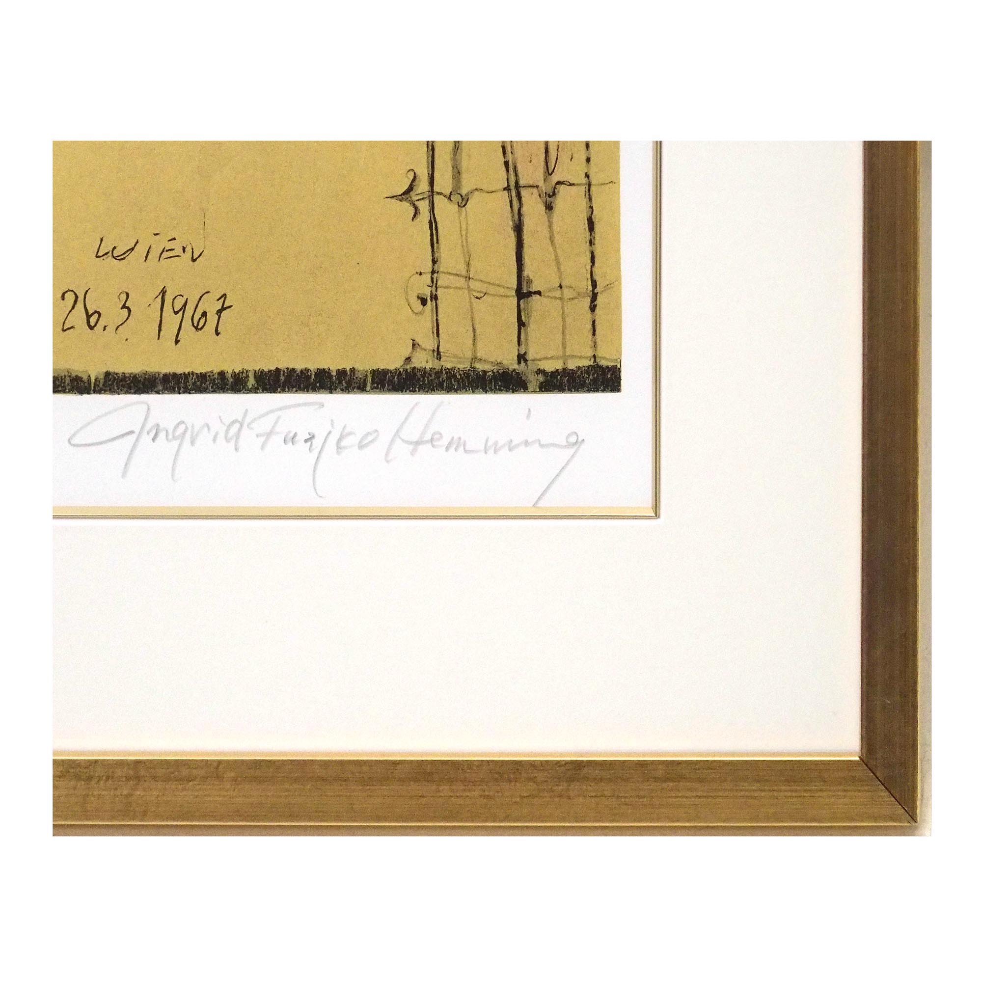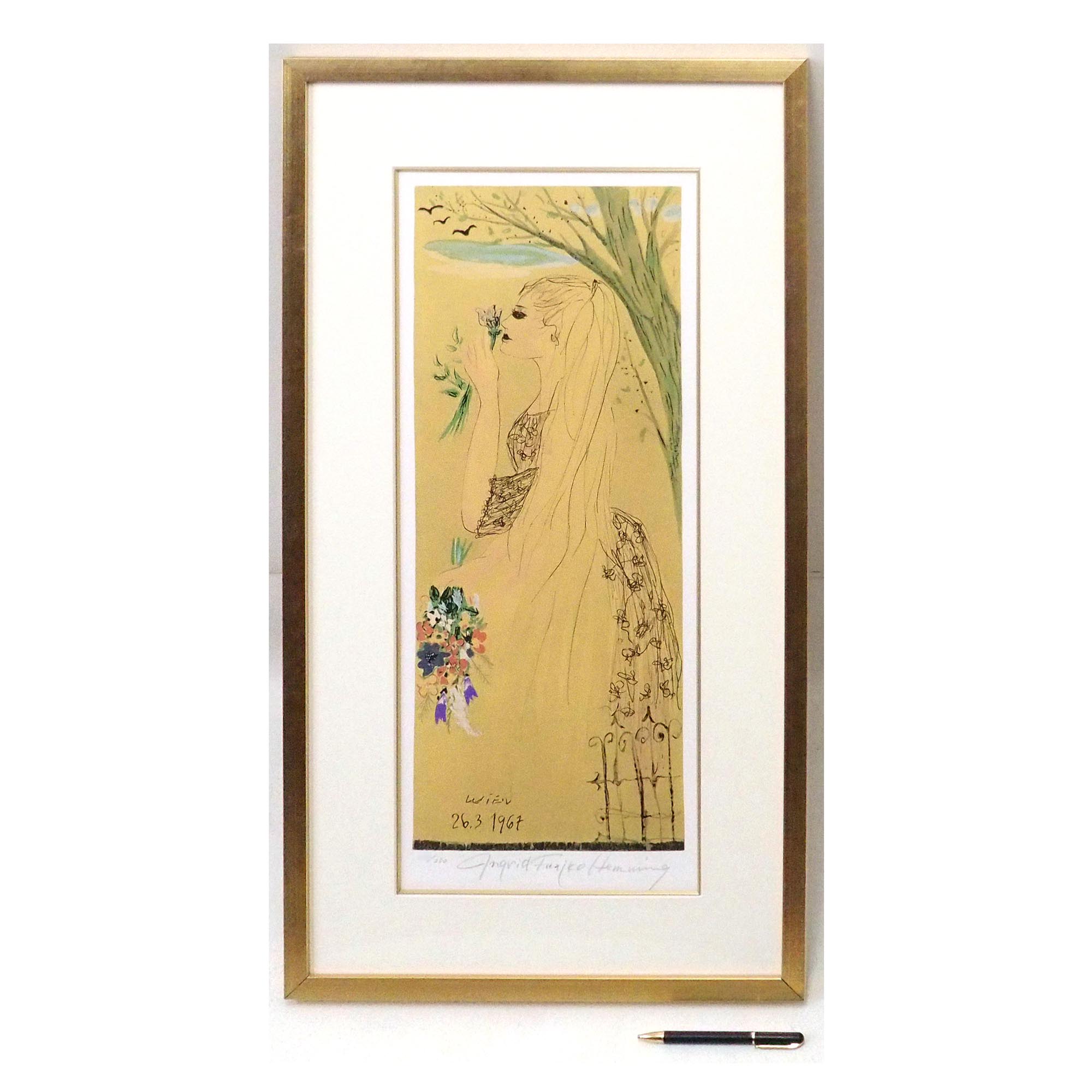 フジ子・ヘミングによる「春」。2006年発行の直筆サイン入りリトグラフ、縦長作品です。