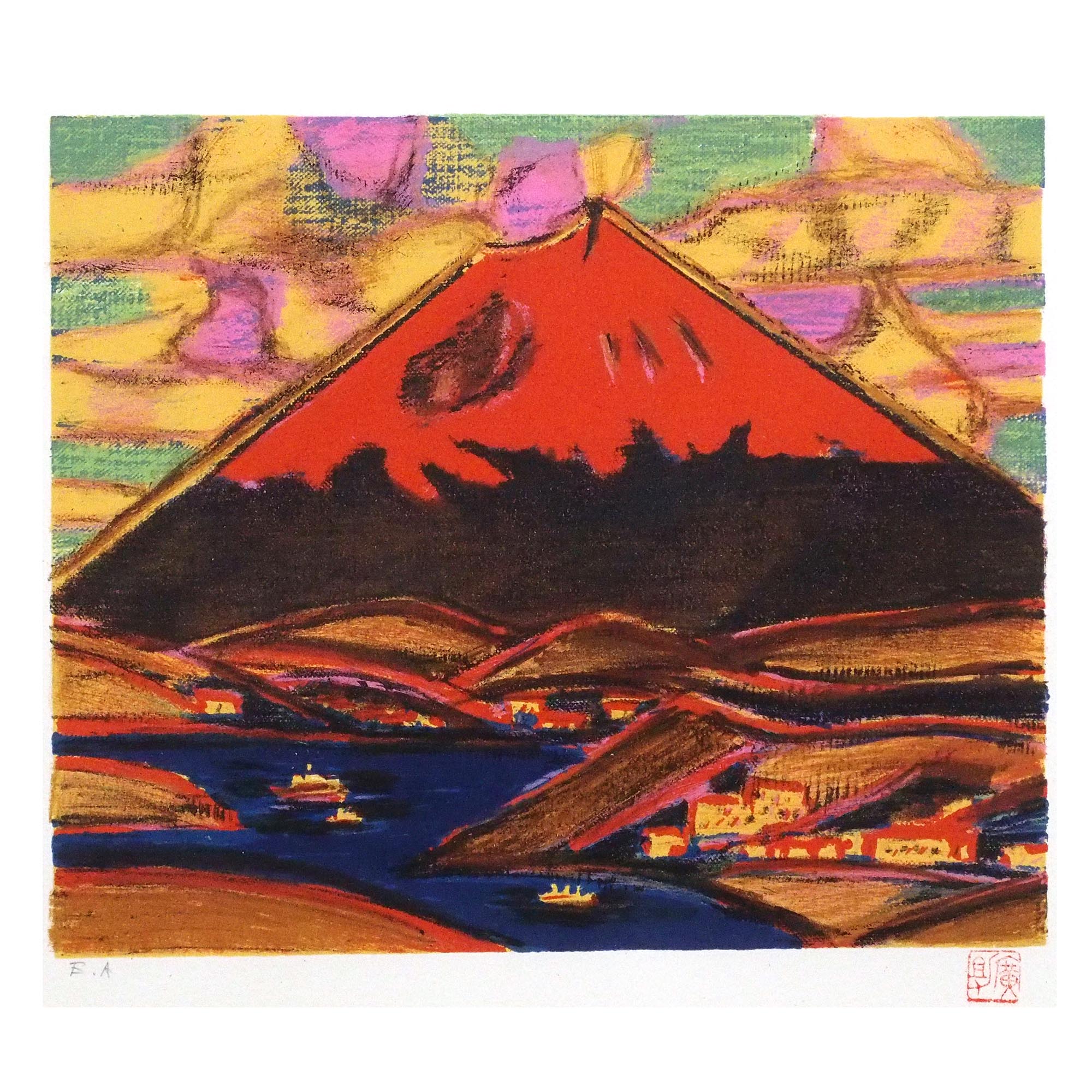 「朱富士(2)」田崎広助による印有りのリトグラフです。