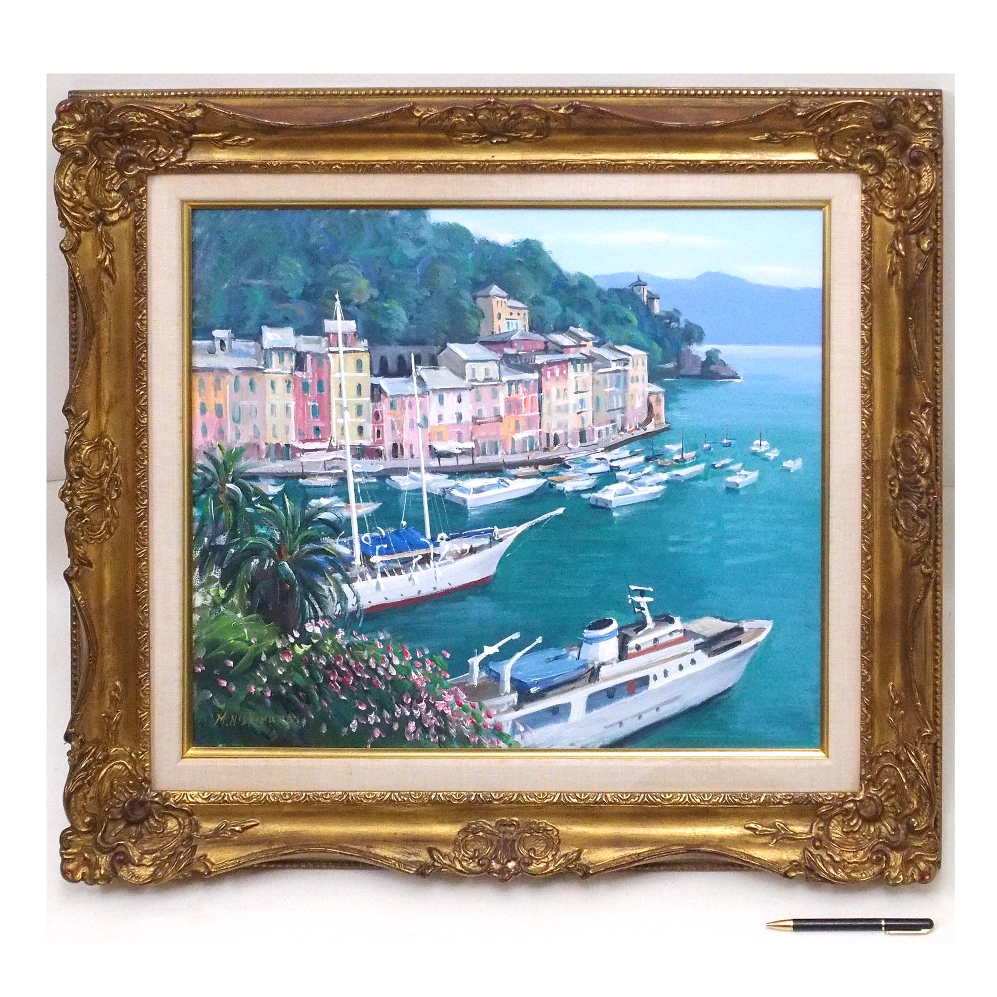 「滞船 ポルトフィーノにて」西村正次による1982年作のキャンバスに油彩10号です。