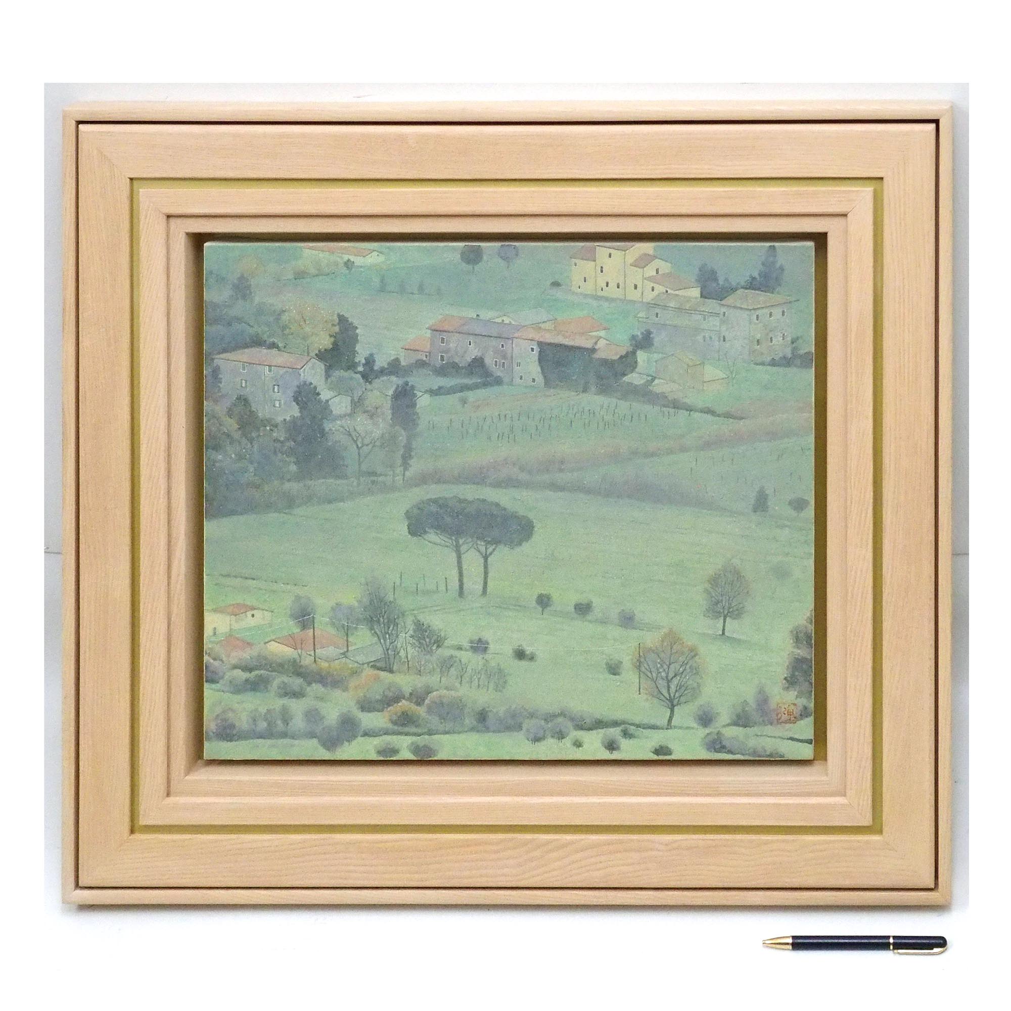 「トスカーナの詩(コルトーナ)」芝康弘による印・共シール有りの紙本彩色8号です。