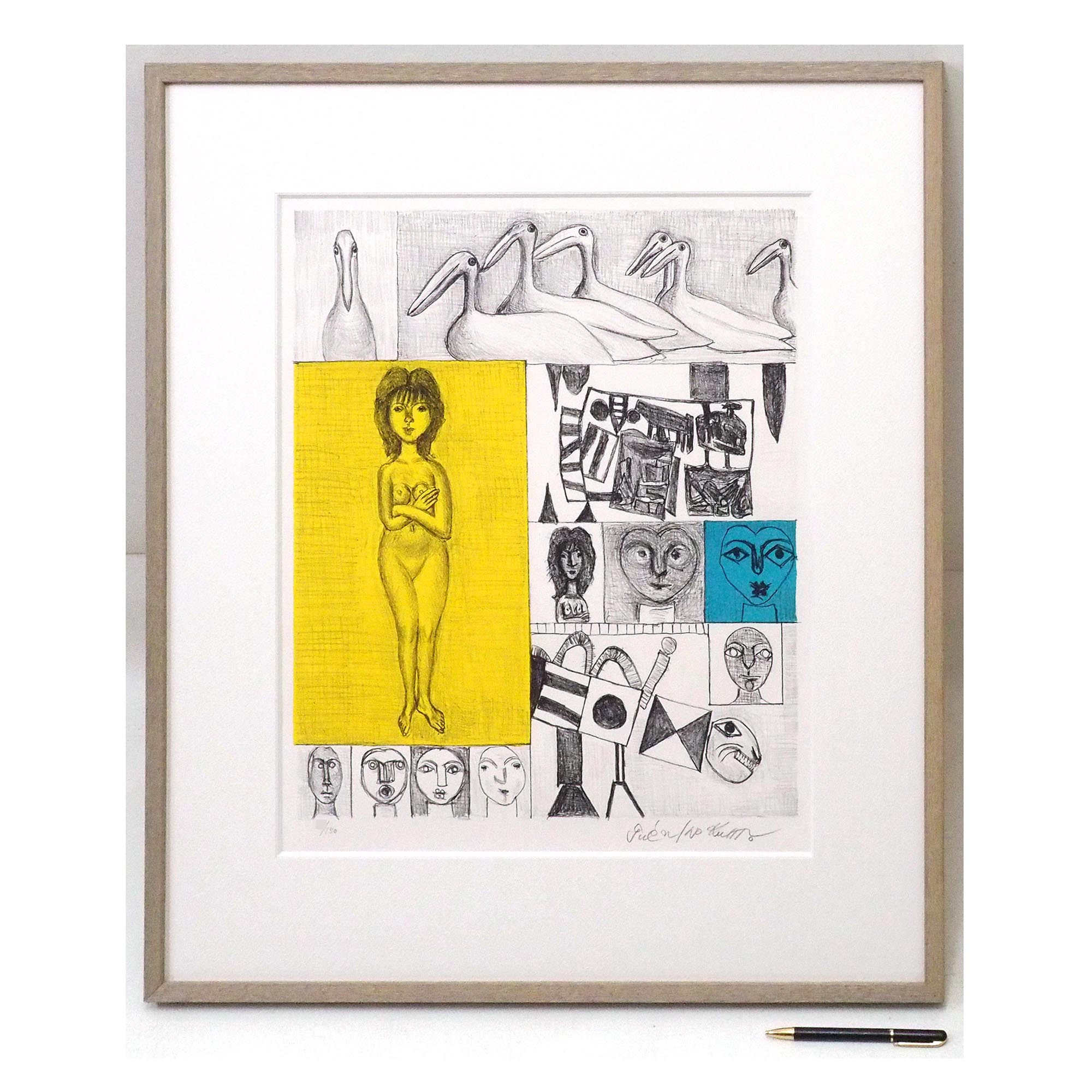 「裸子と鳥」猪熊弦一郎による直筆サイン入りのリトグラフです。