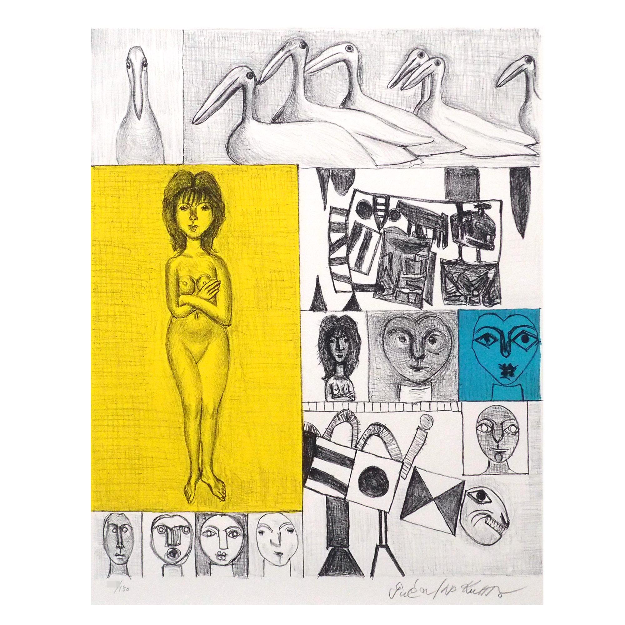 1992年に卆寿記念として丸亀市猪熊弦一郎現代美術館より限定150部で発行されたオリジナルリトグラフ集「顔ファミリー」の1点です。