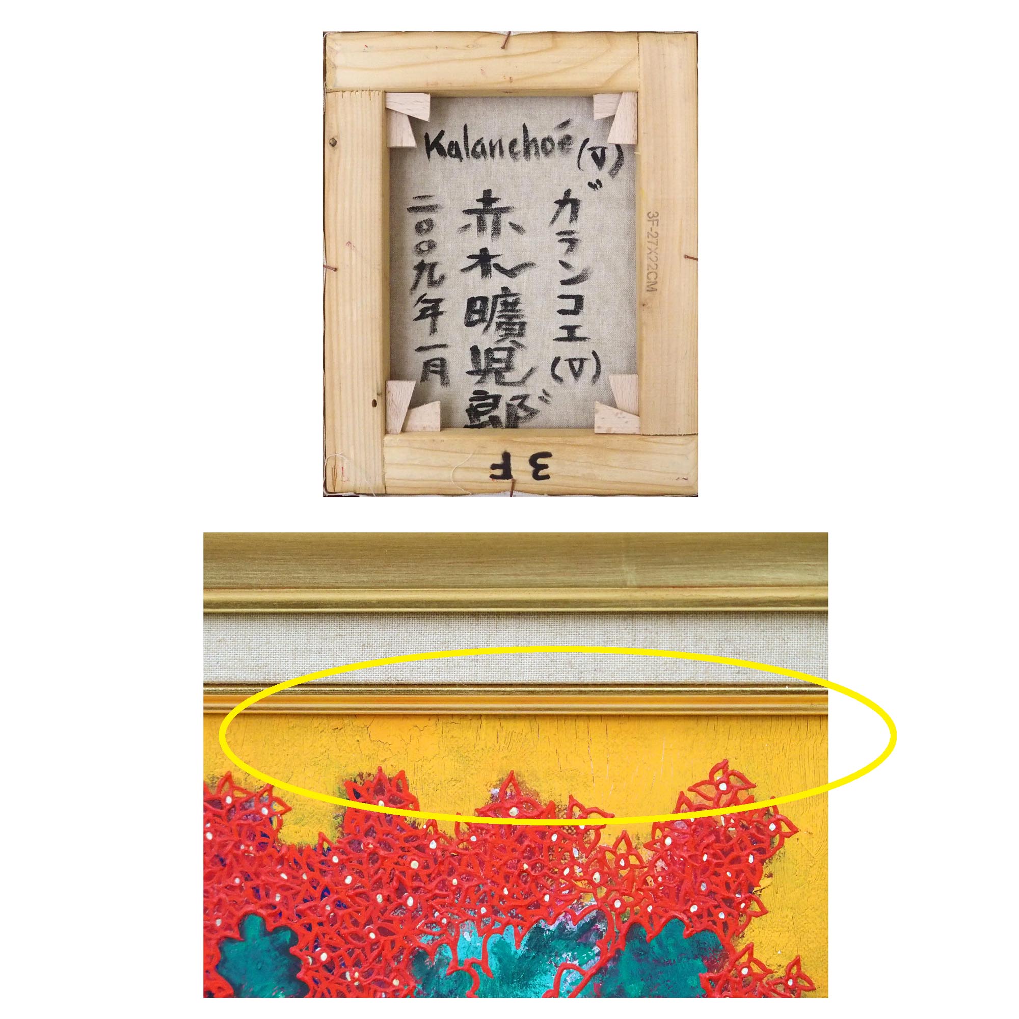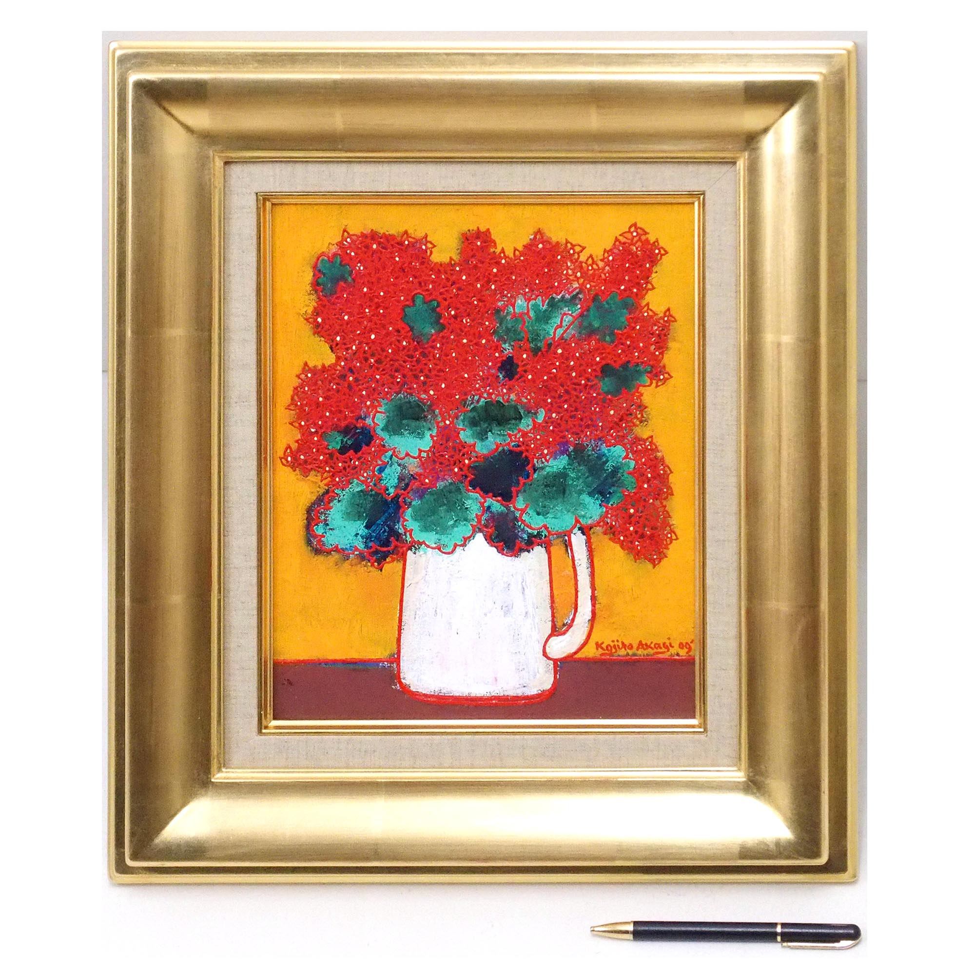 「カランコエ(V)」赤木曠児郎による2009年作のキャンバスに油彩3号、飾りやすいサイズの作品です。
