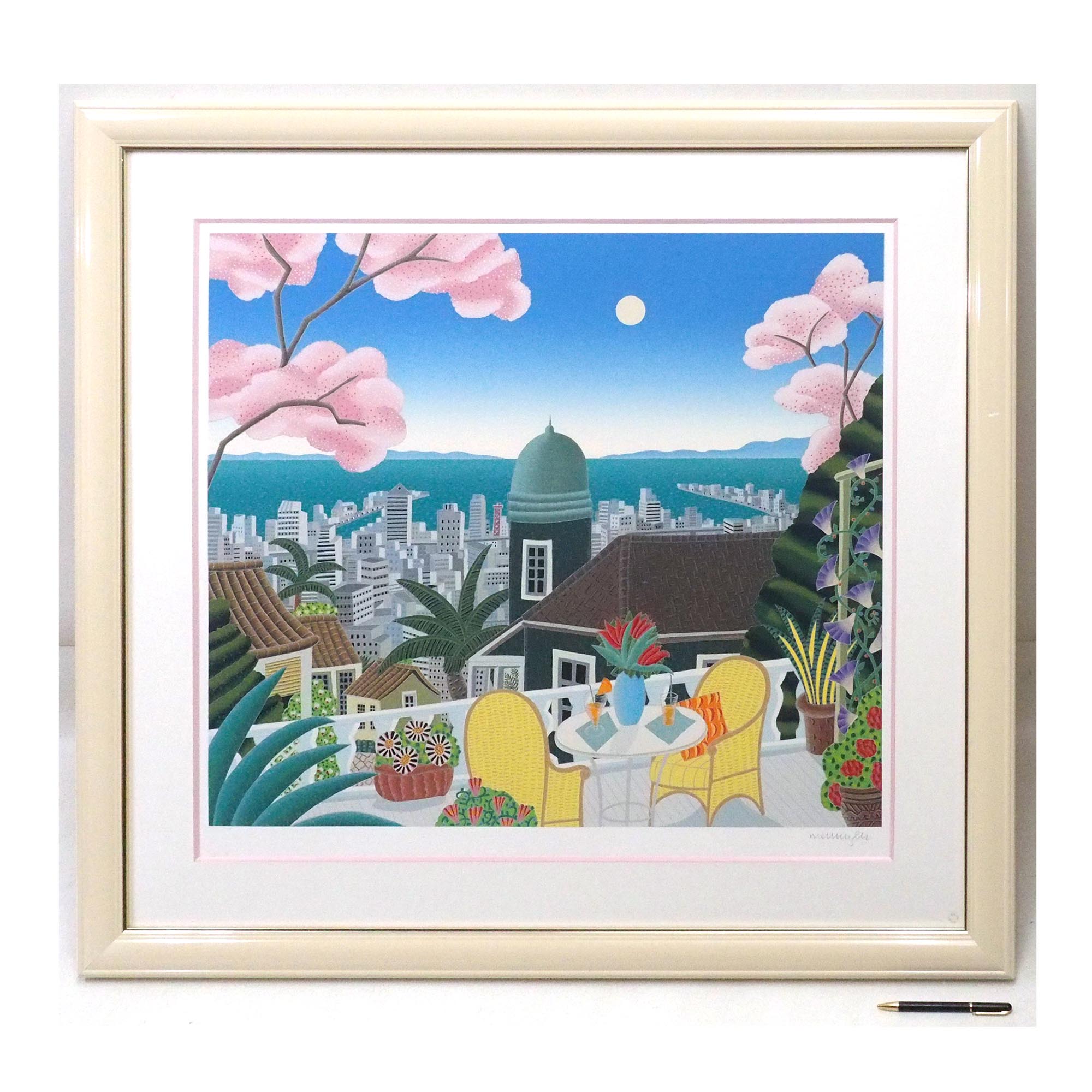 世界各国のリゾート地を描いており、出品作品は、1993年に発表された「KOBE」シリーズとなります。異国情緒漂う北野の街に桜の木が美しい作品です。