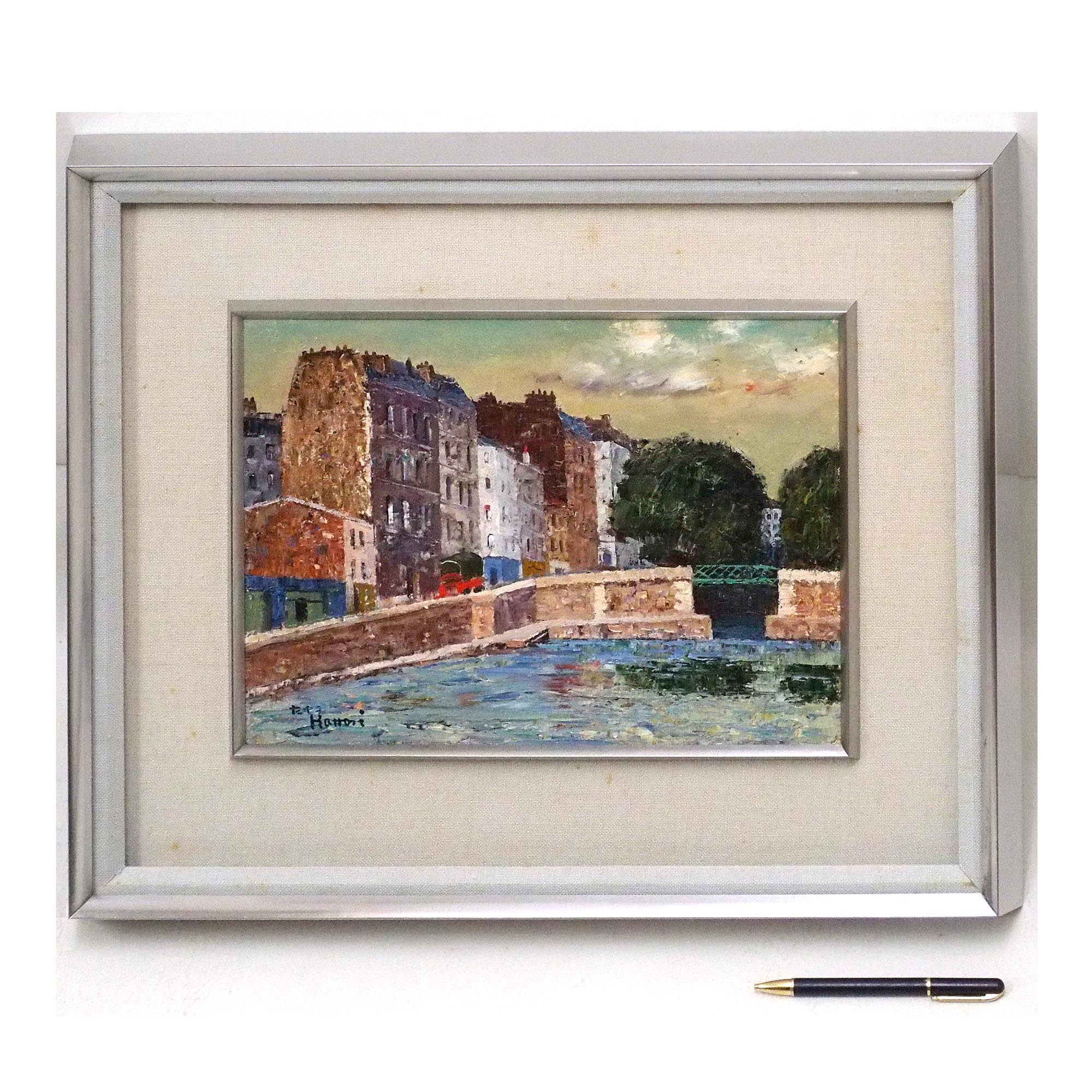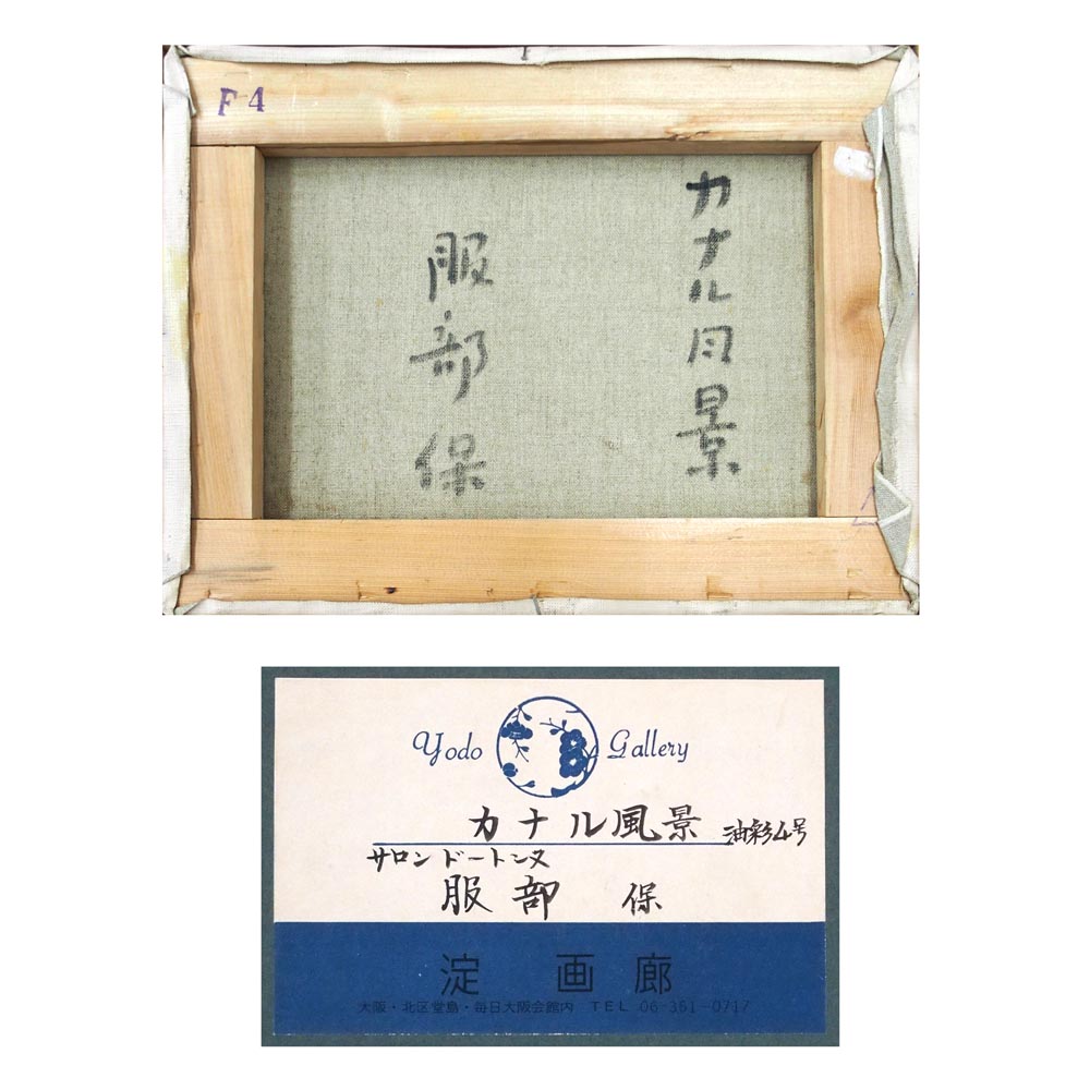 「カナル風景」服部保によるキャンバスに油彩4号で、淀画廊シールがございます。