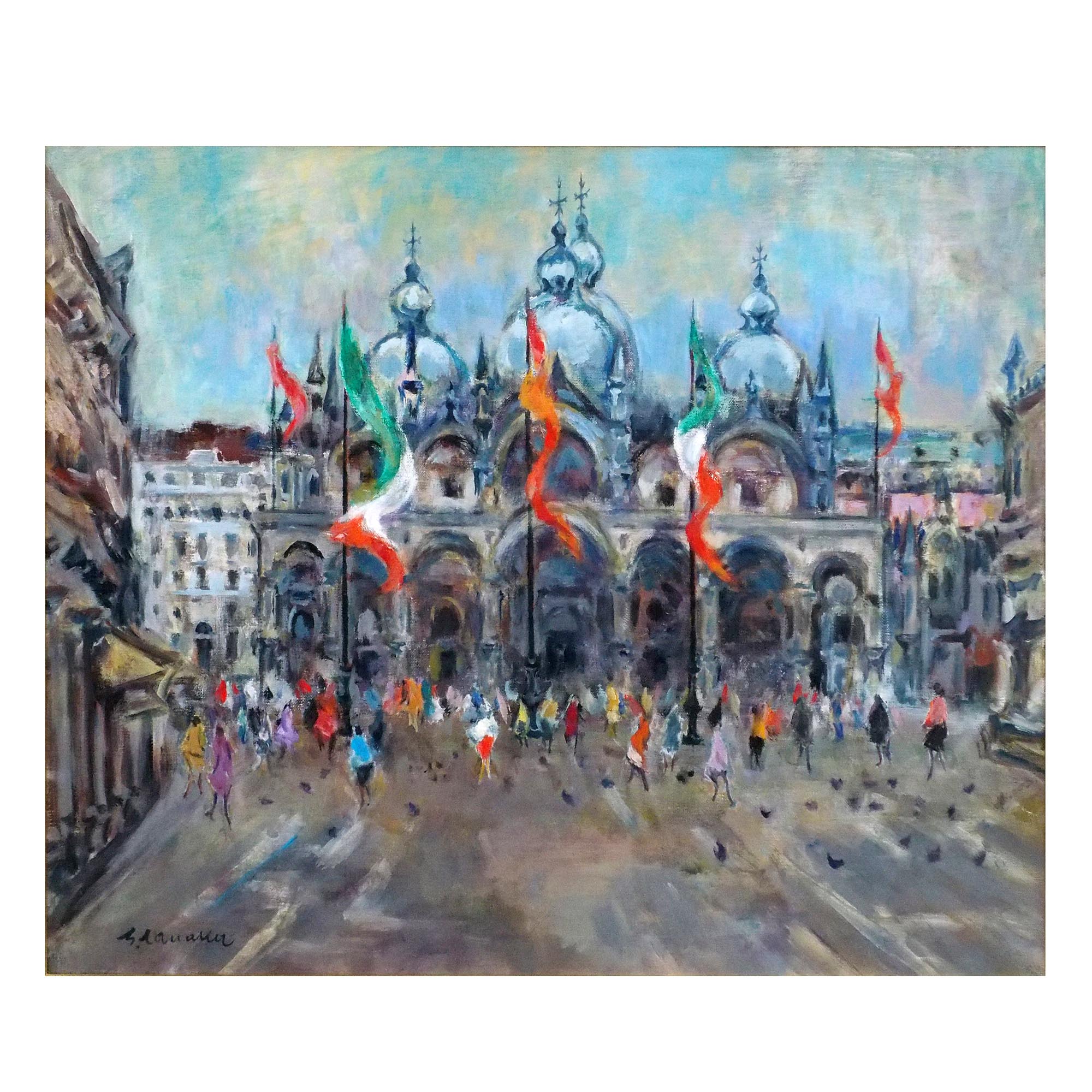 「祝祭のサン・マルコ(ベネチア)」田中祥三による1985年作のキャンバスに油彩20号です。