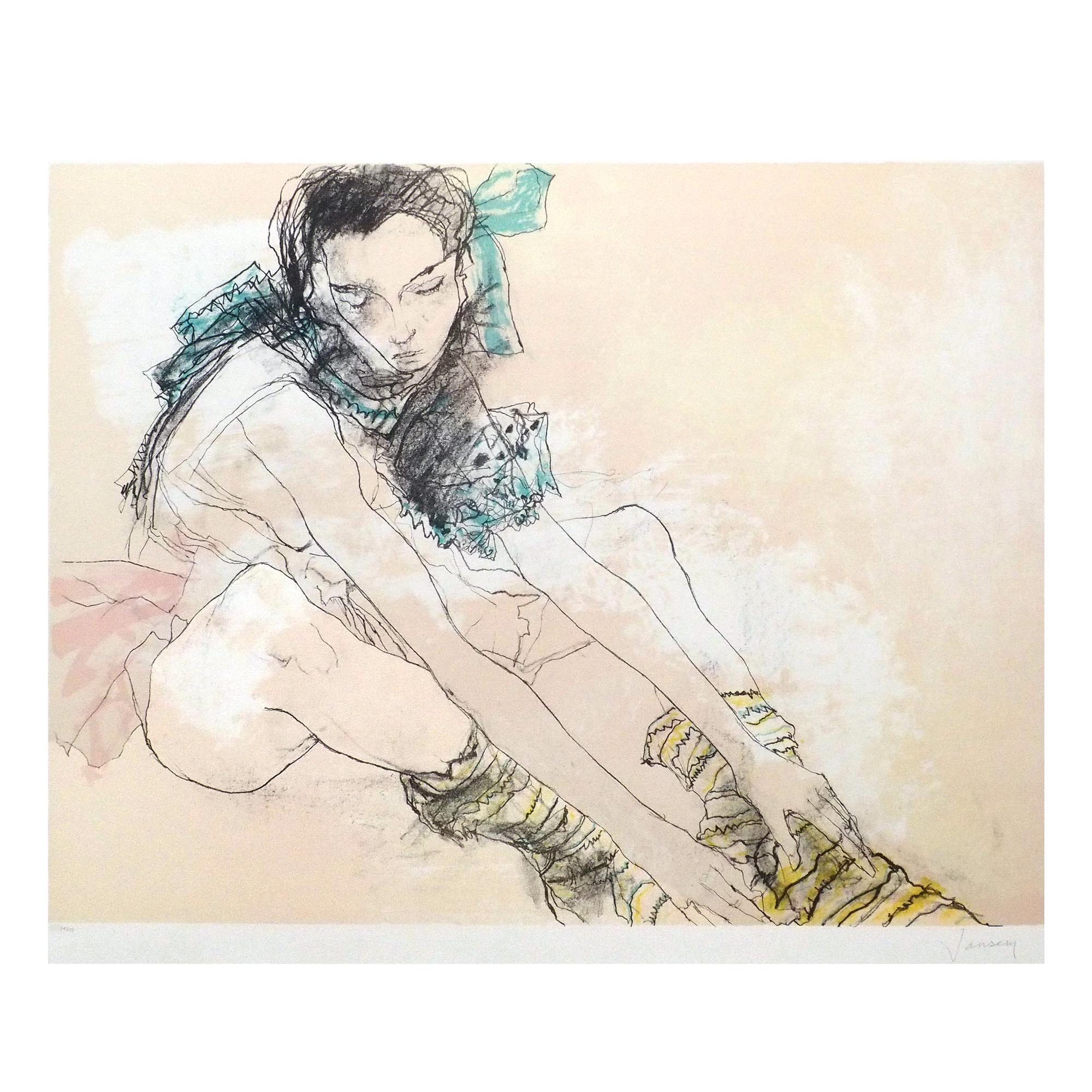 「青いリボン」ジャン・ジャンセンによる1993年作、直筆サイン入りのリトグラフで、「JANSEM LITHOGRAPHE 1984-1993」No.90掲載作品です。