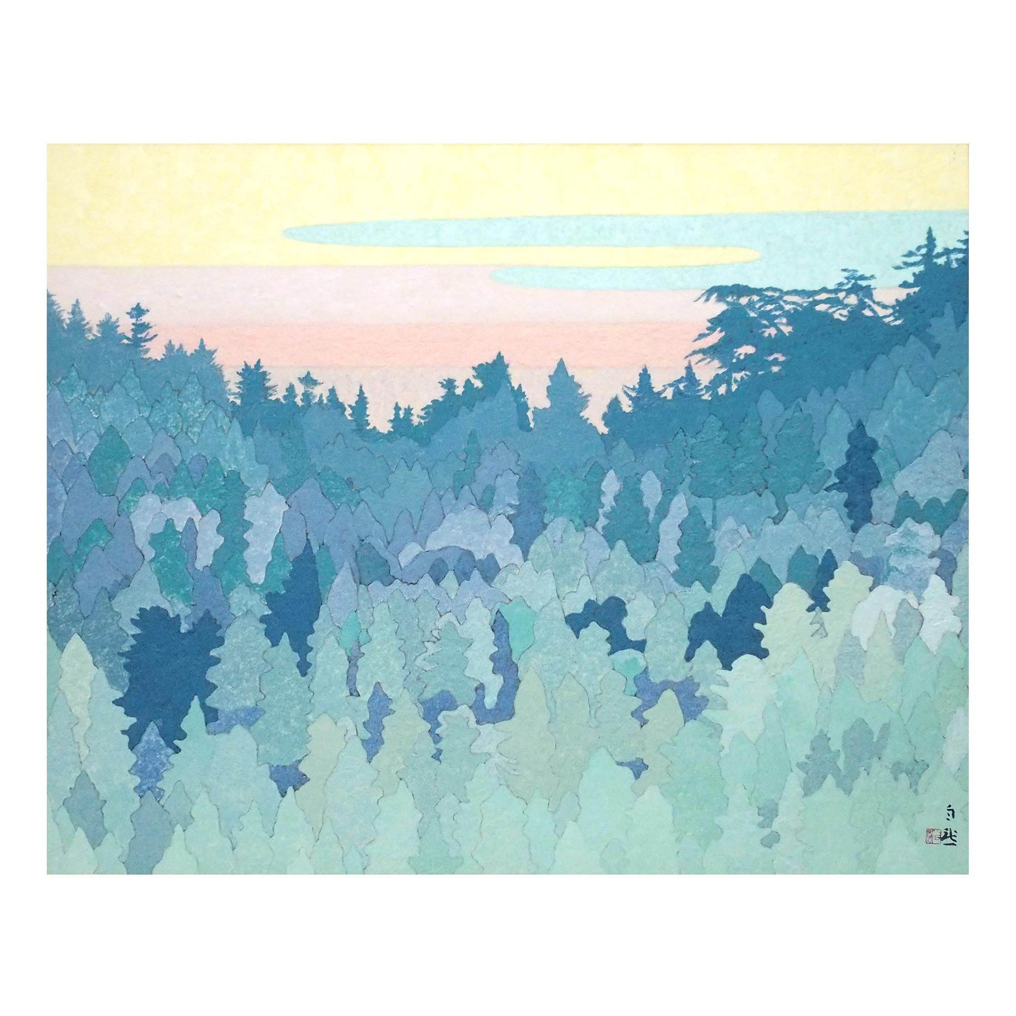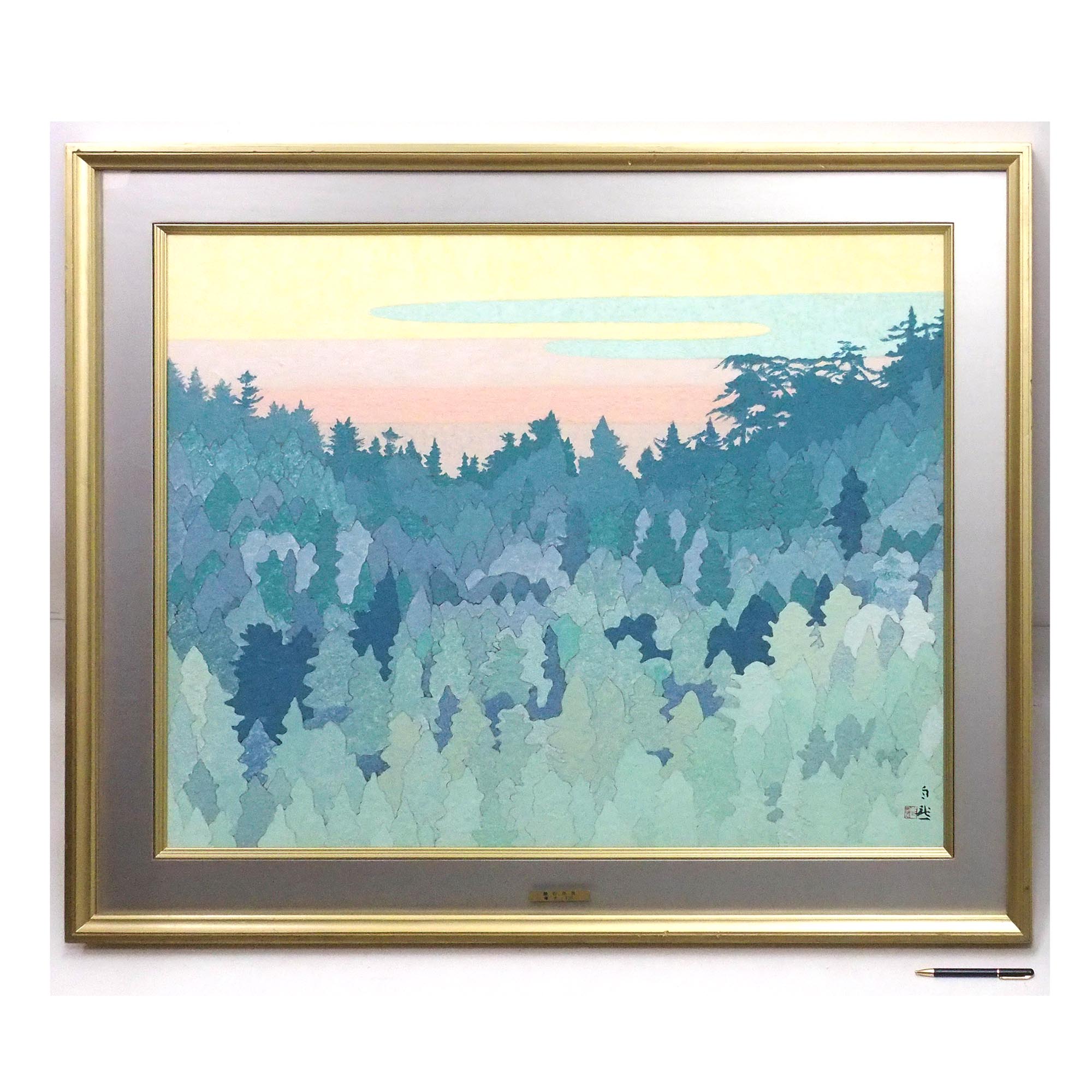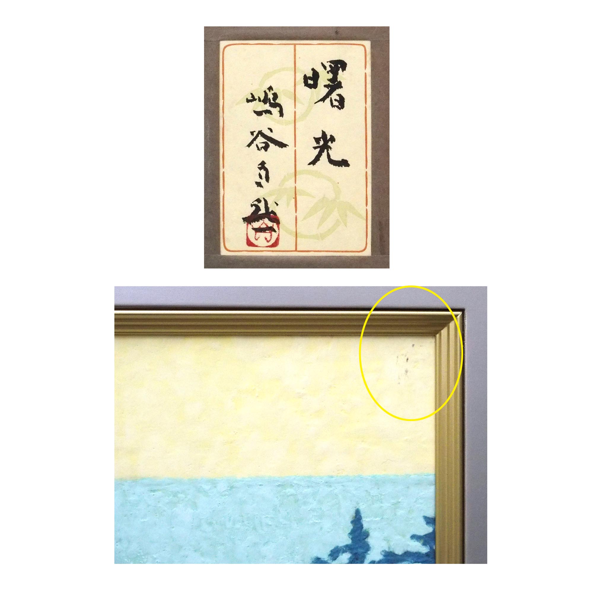 「曙光」嶋谷自然による落款・共シール有りの紙本彩色30号、大型作品です。