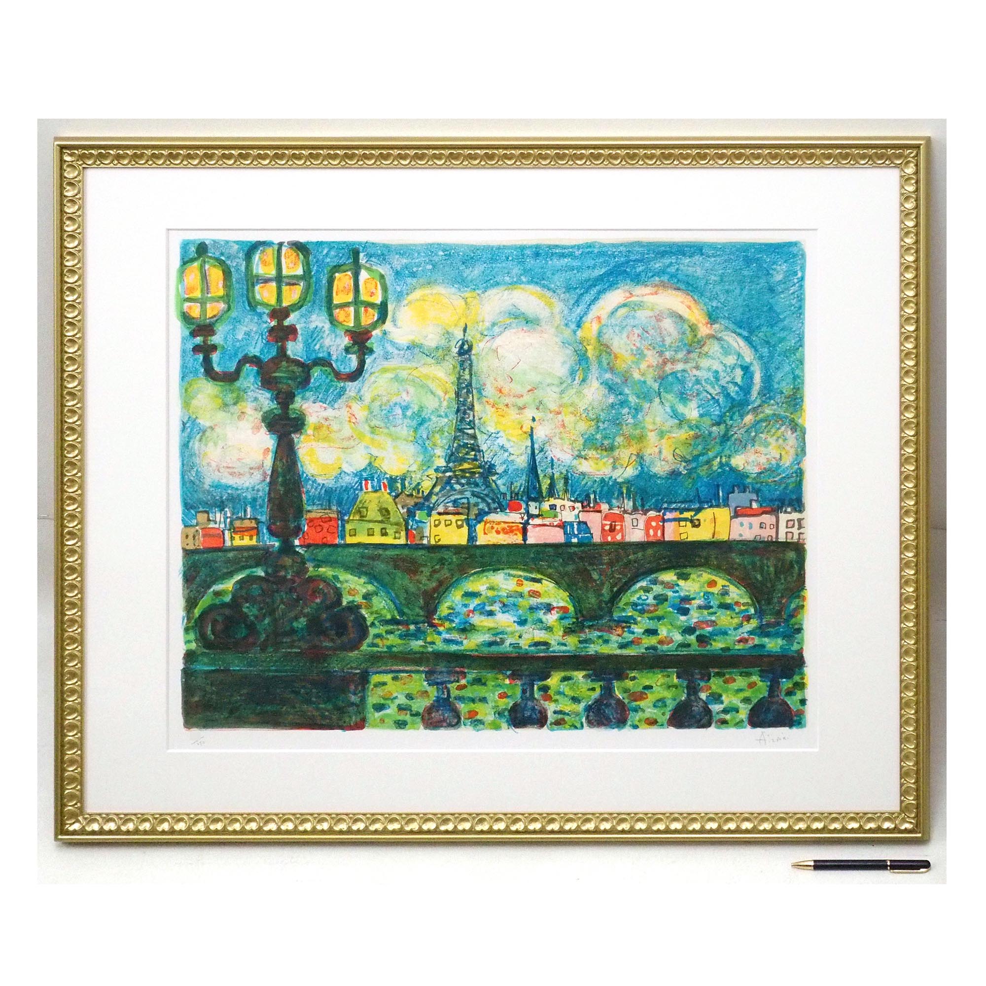 「アルマ橋とエッフェル塔」ポール・アイズピリによる直筆サイン入りのリトグラフです。