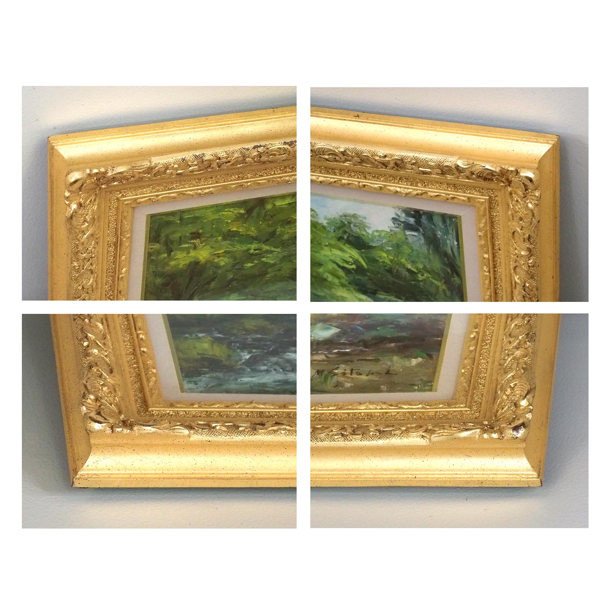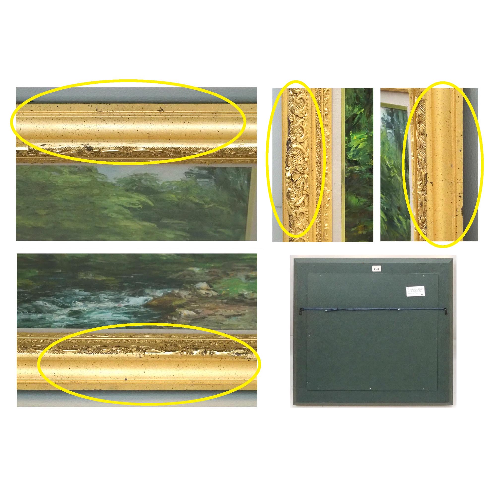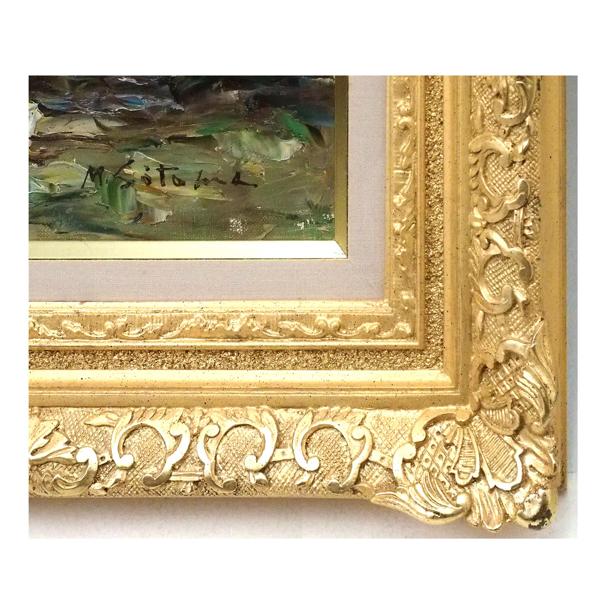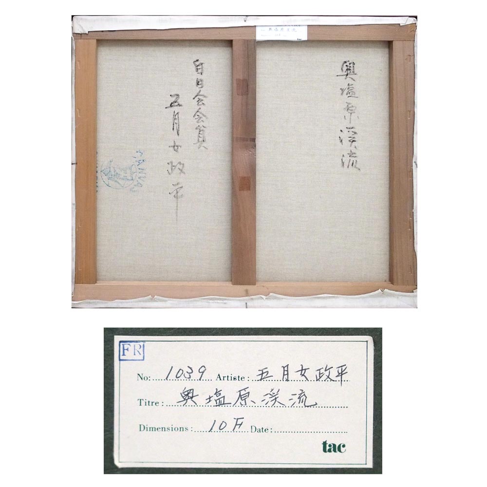 「塩原渓流」五月女政平によるキャンバスに油彩10号で、額裏にtacシールがございます。