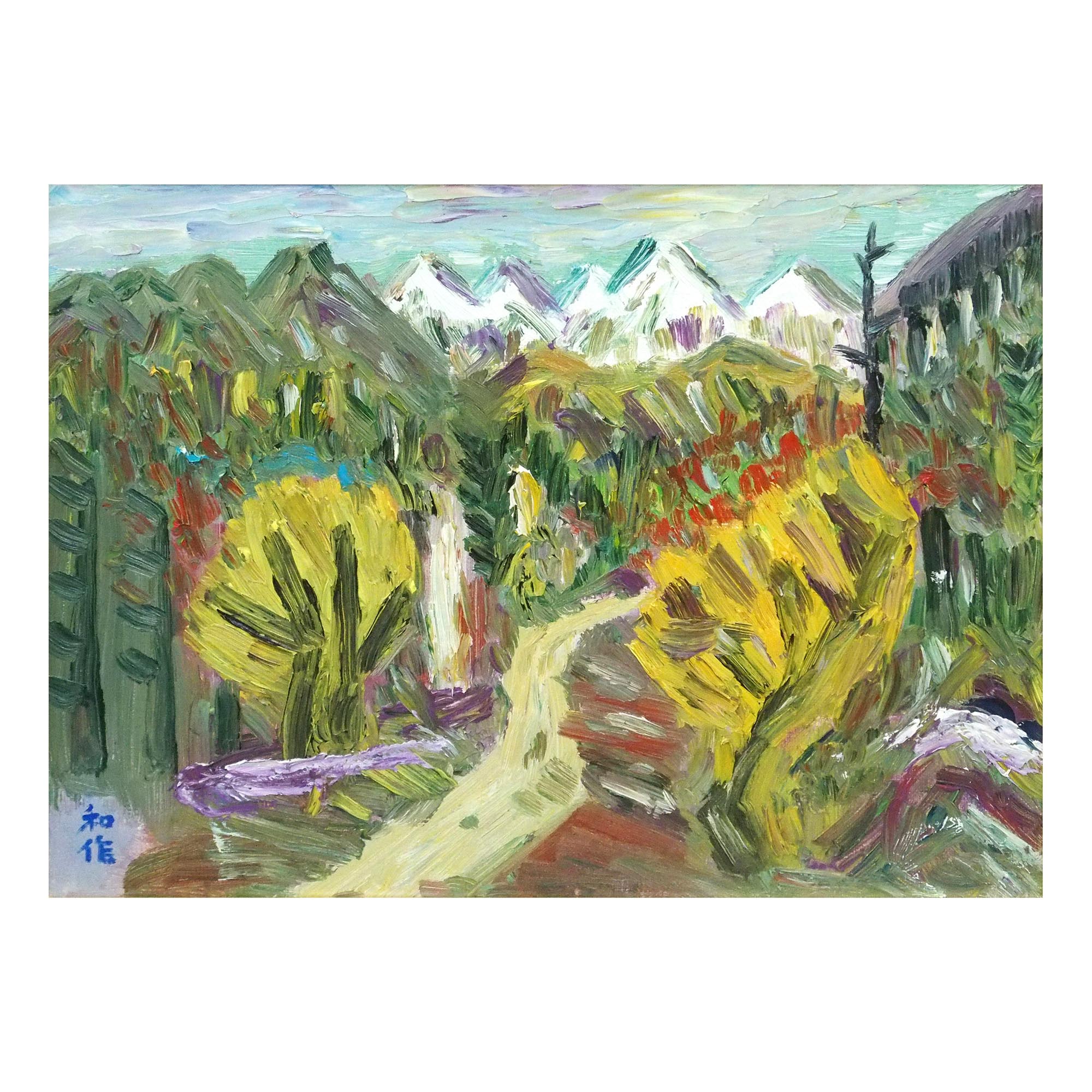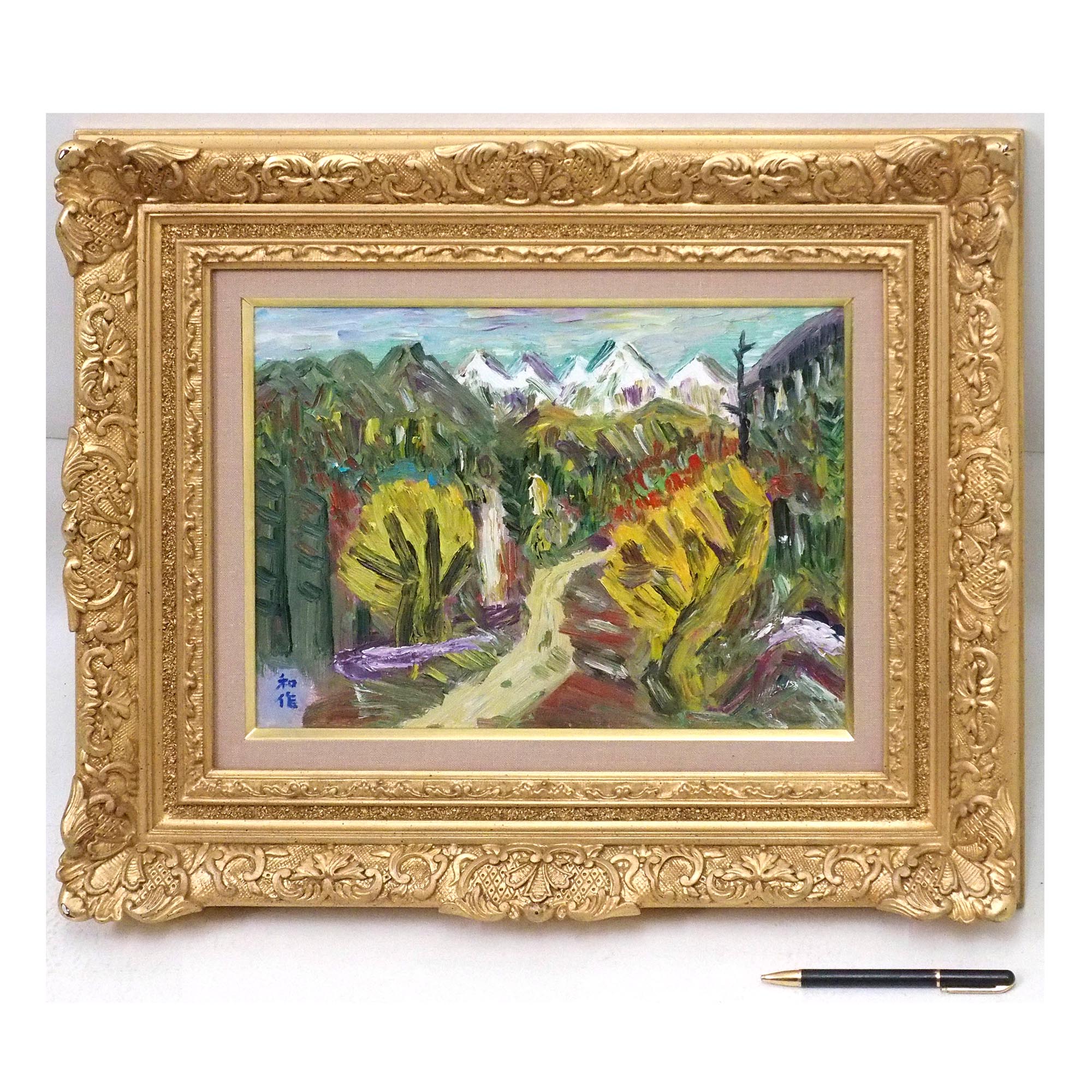 「秋山」小林和作によるキャンバスに油彩4号、飾りやすいサイズの作品です。