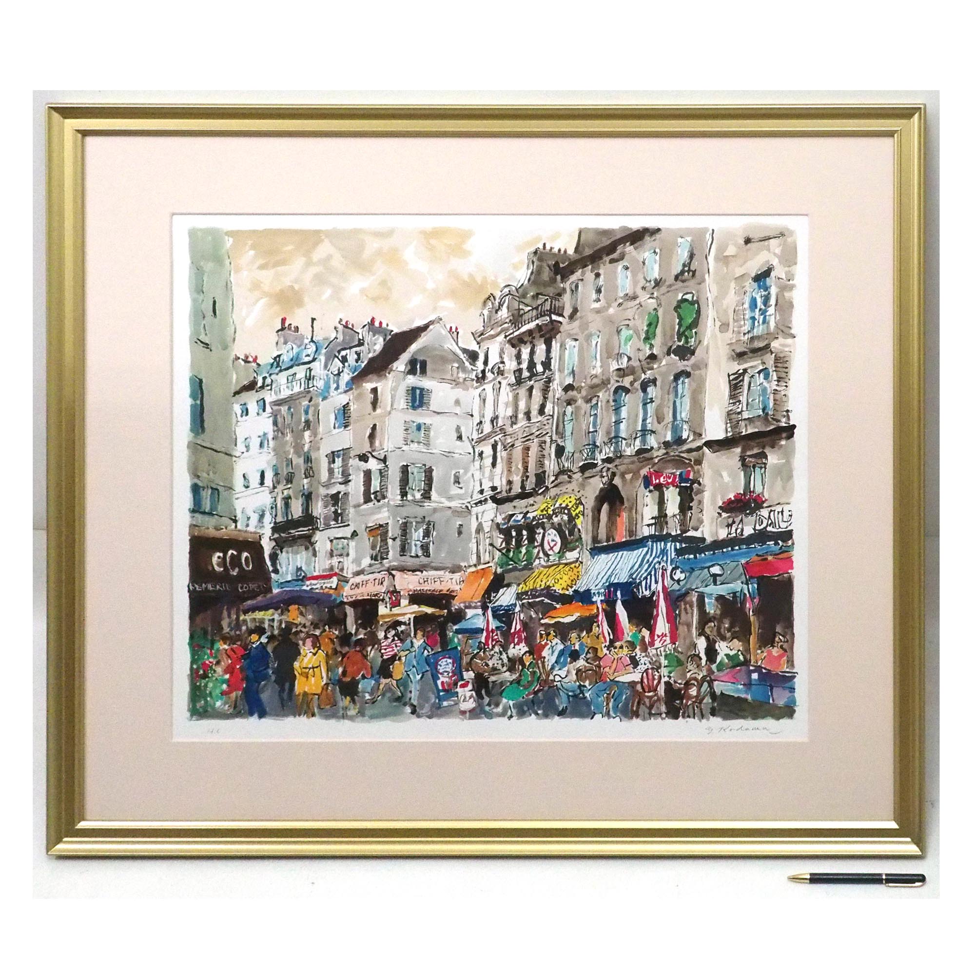 「市場の風景」児玉幸雄による直筆サイン入りのリトグラフです。