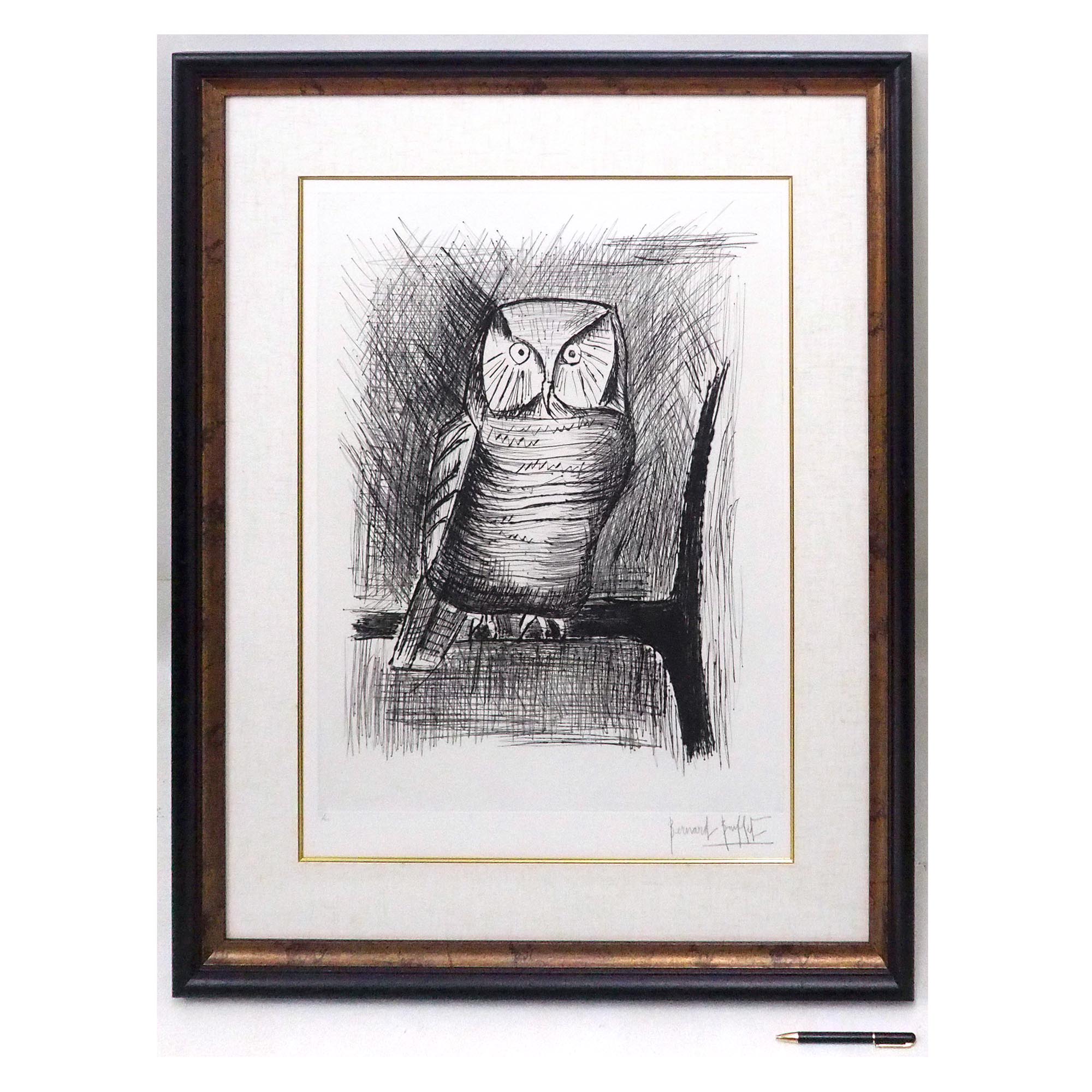 「ふくろう」ベルナール・ビュッフェによる1988年作、直筆サイン入りのドライポイントです。