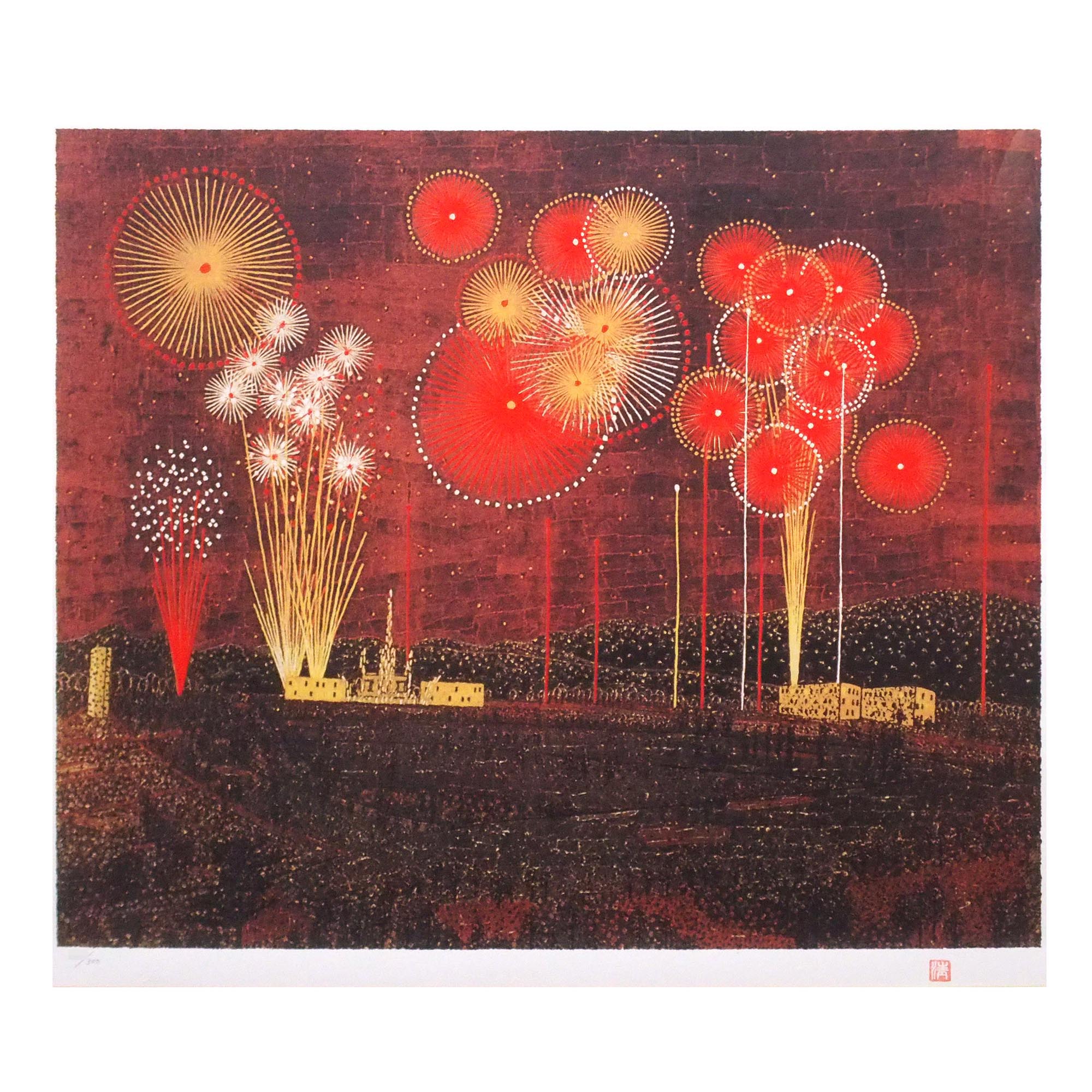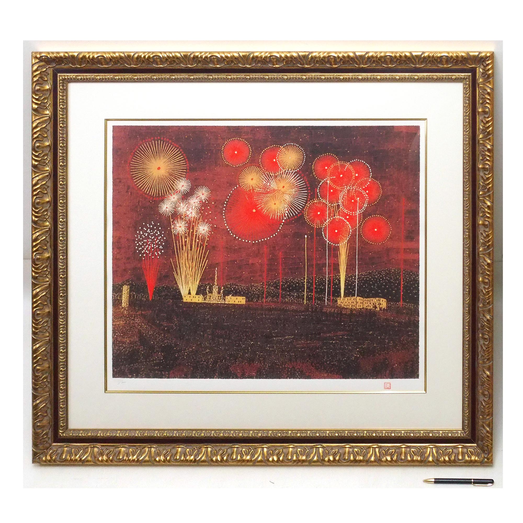山下清による「富田林の花火」。代表作のひとつで、印入りのリトグラフです。