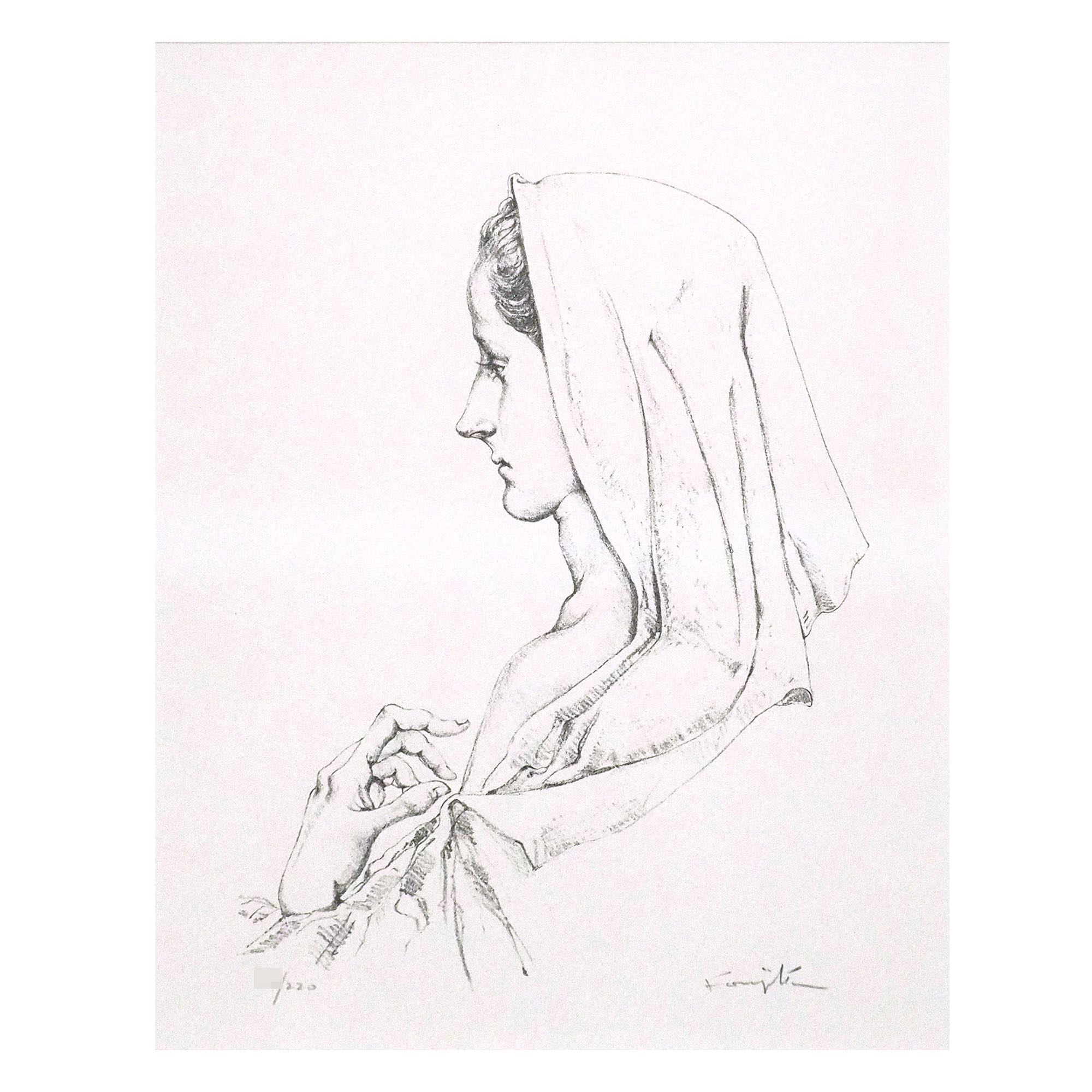 「聖母の横顔」藤田嗣治による直筆サイン入りのリトグラフです。