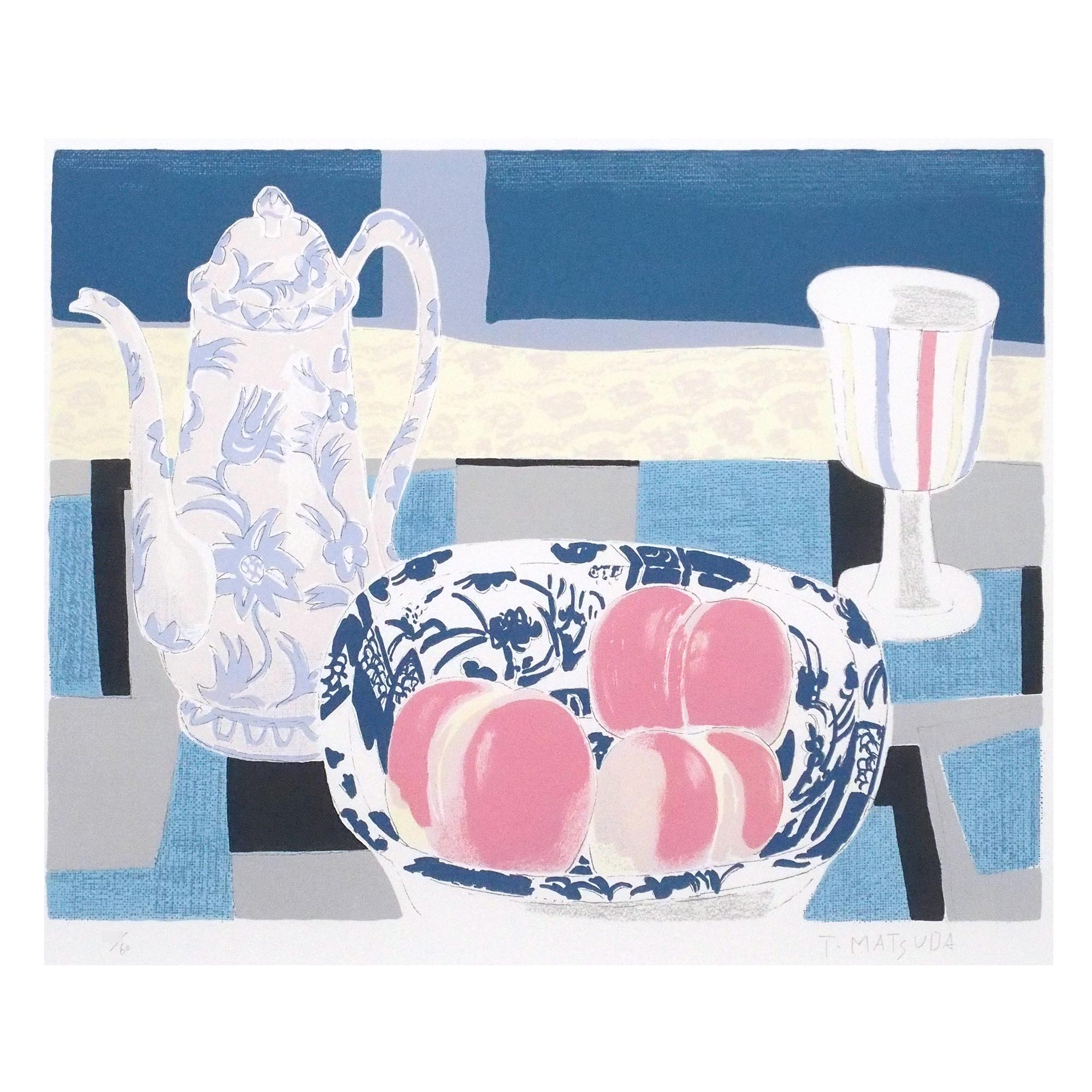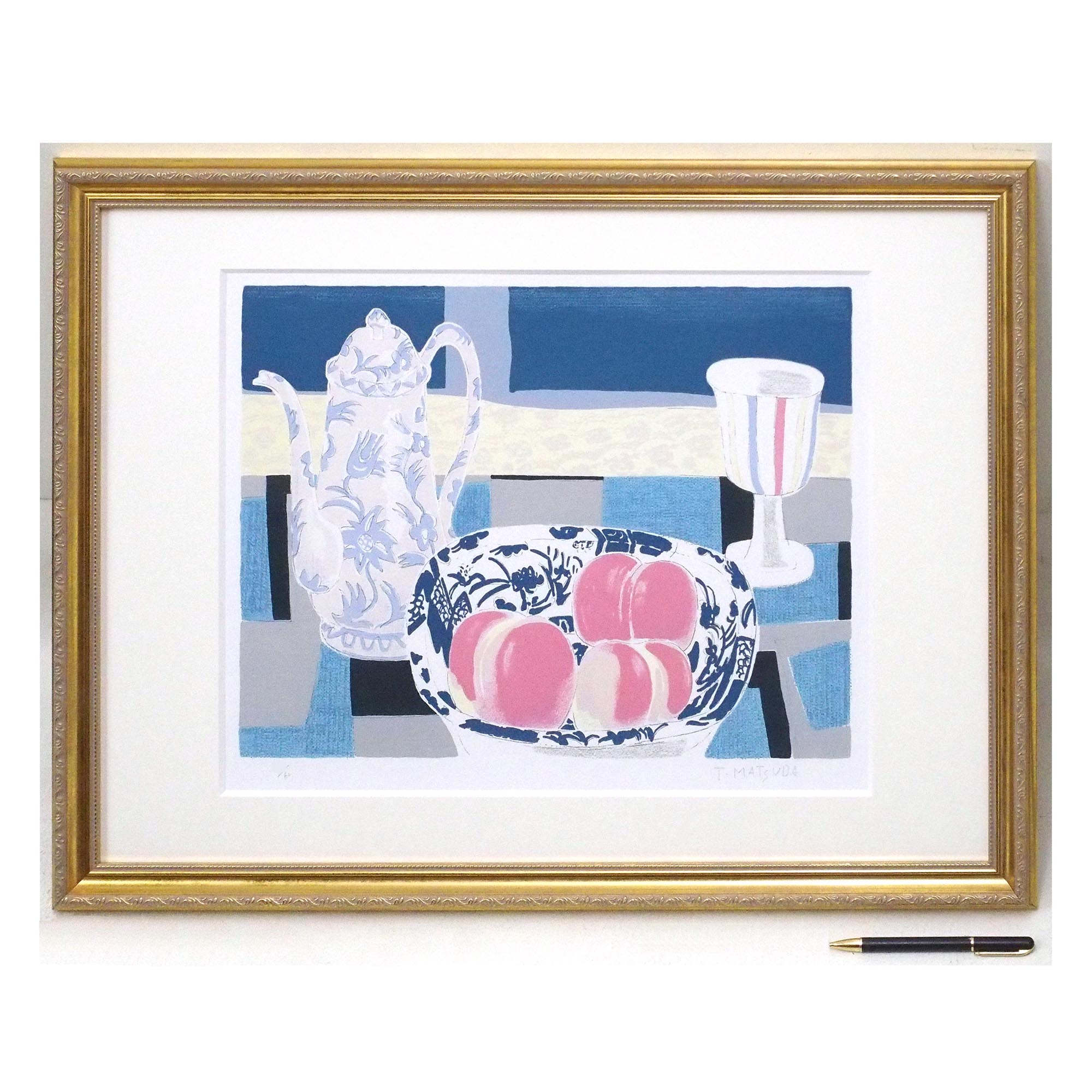「果実のある卓上」松田環による直筆サイン入りのリトグラフです。