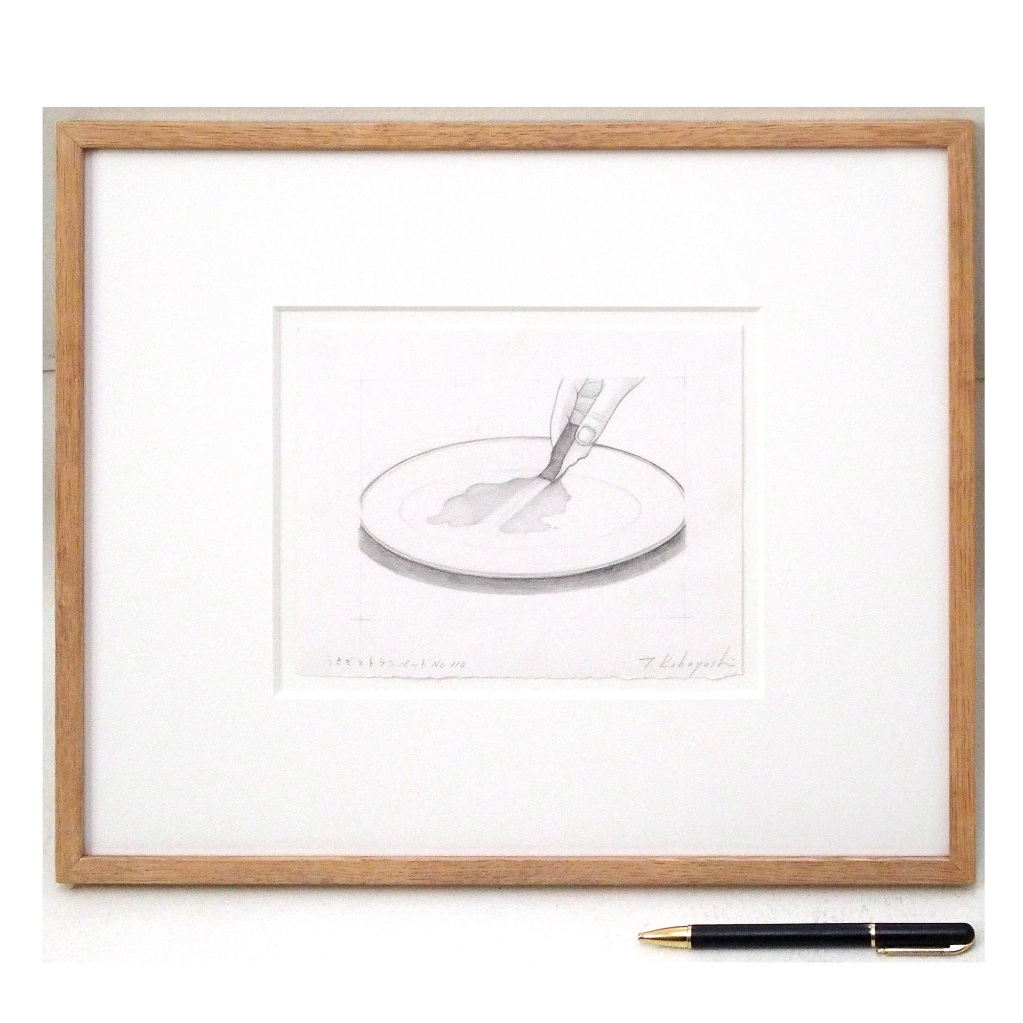 「うさぎとトランペット No.110」小林孝亘による2003年作の紙に鉛筆、水彩0号です。
