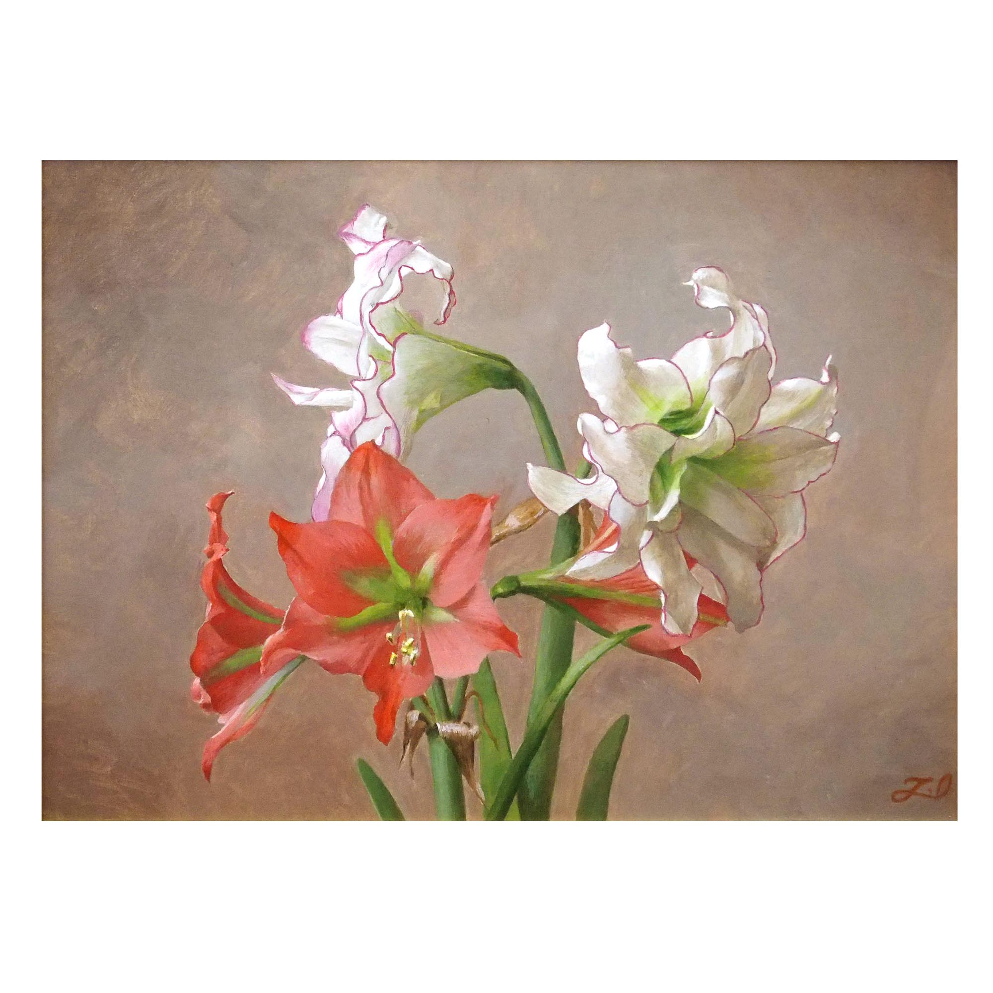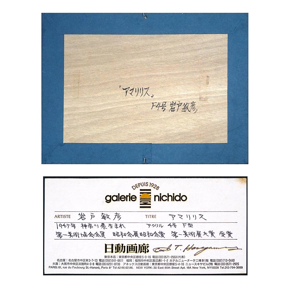 「アマリリス」岩戸敏彦によるボードにアクリル4号で、日動画廊シールがございます。