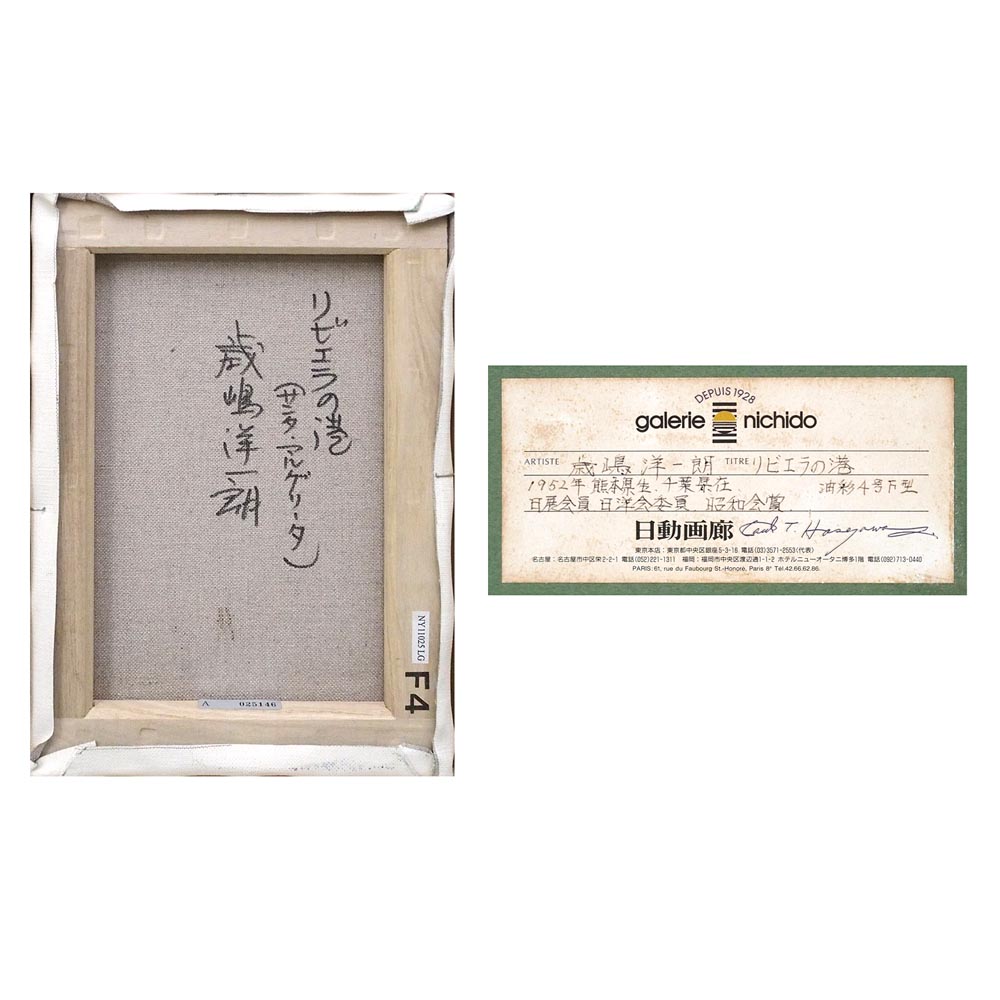 「リビエラの港(サンタ・マルゲリータ)」歳嶋洋一朗によるキャンバスに油彩4号、飾りやすいサイズの作品です。
