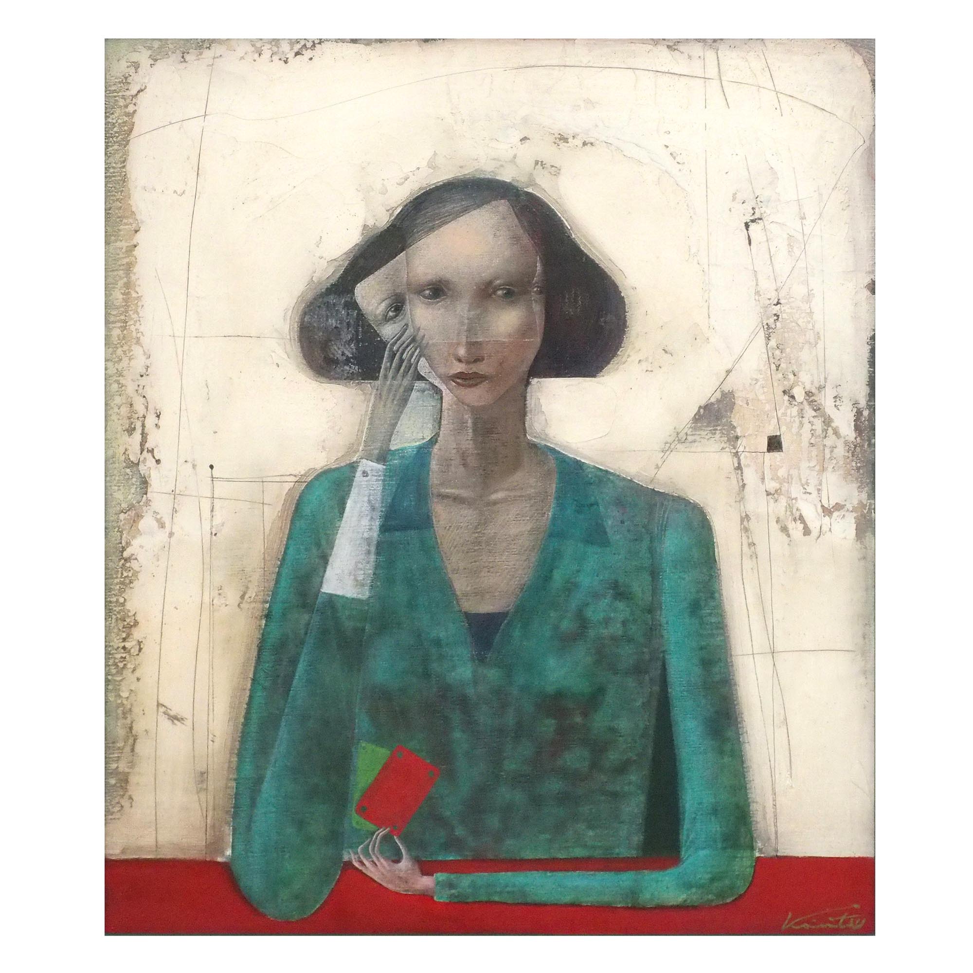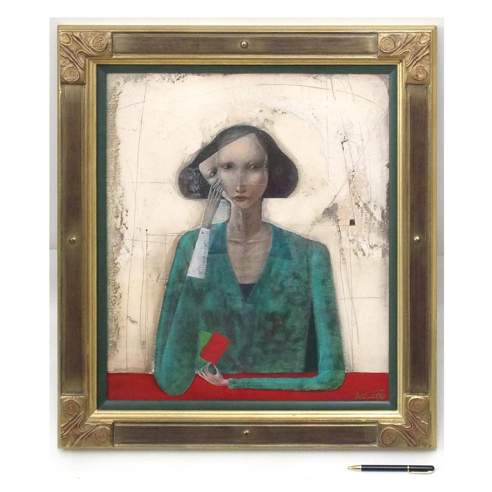 「カード」開光市による2007年作のキャンバスに油彩10号です。