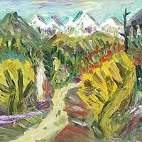 「藻鼈川を渡る」中村英夫によるキャンバスに油彩20号です。