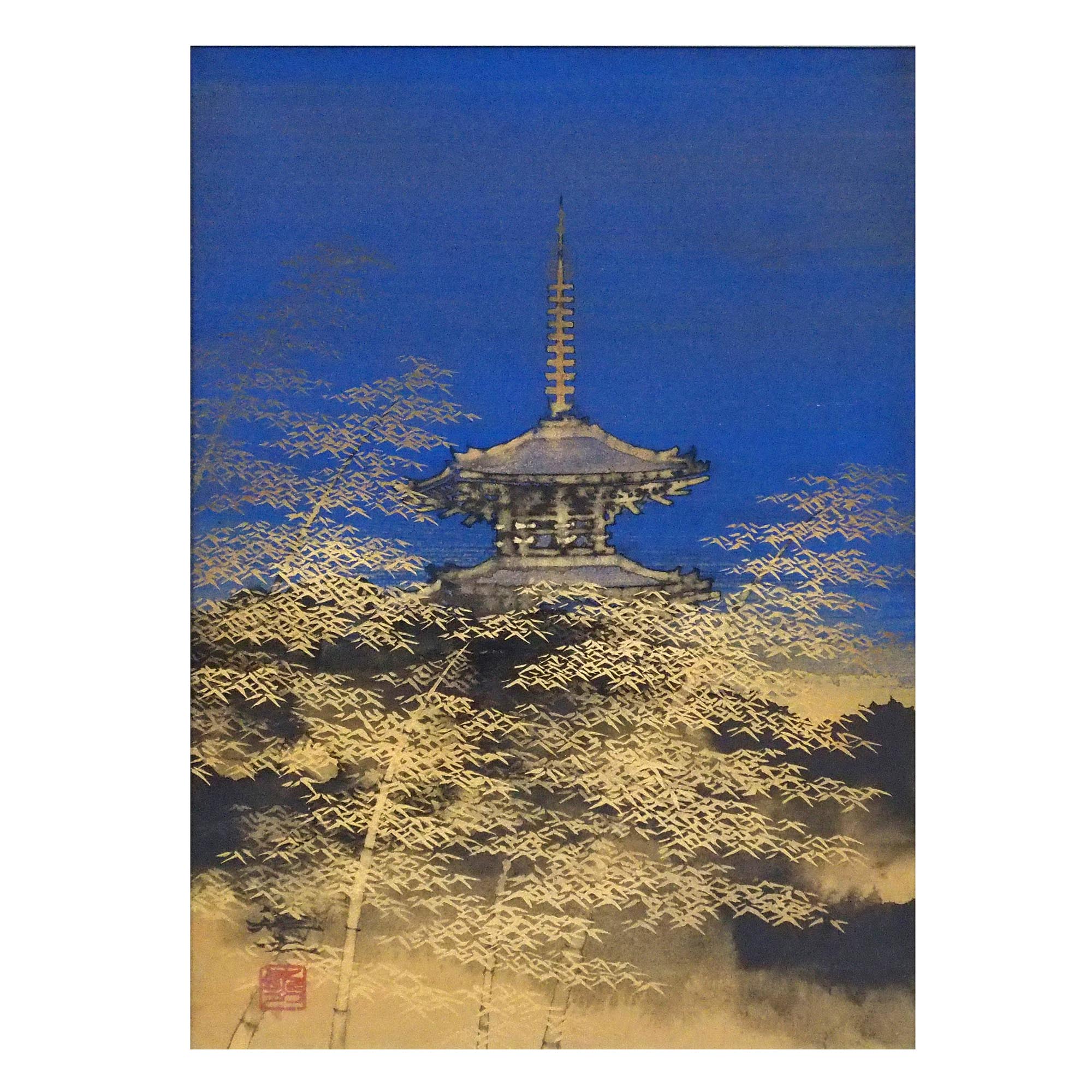 作家の代表的なモチーフ、樹木と古寺の塔を組み合わせた『塔韻シリーズ』のひとつです。