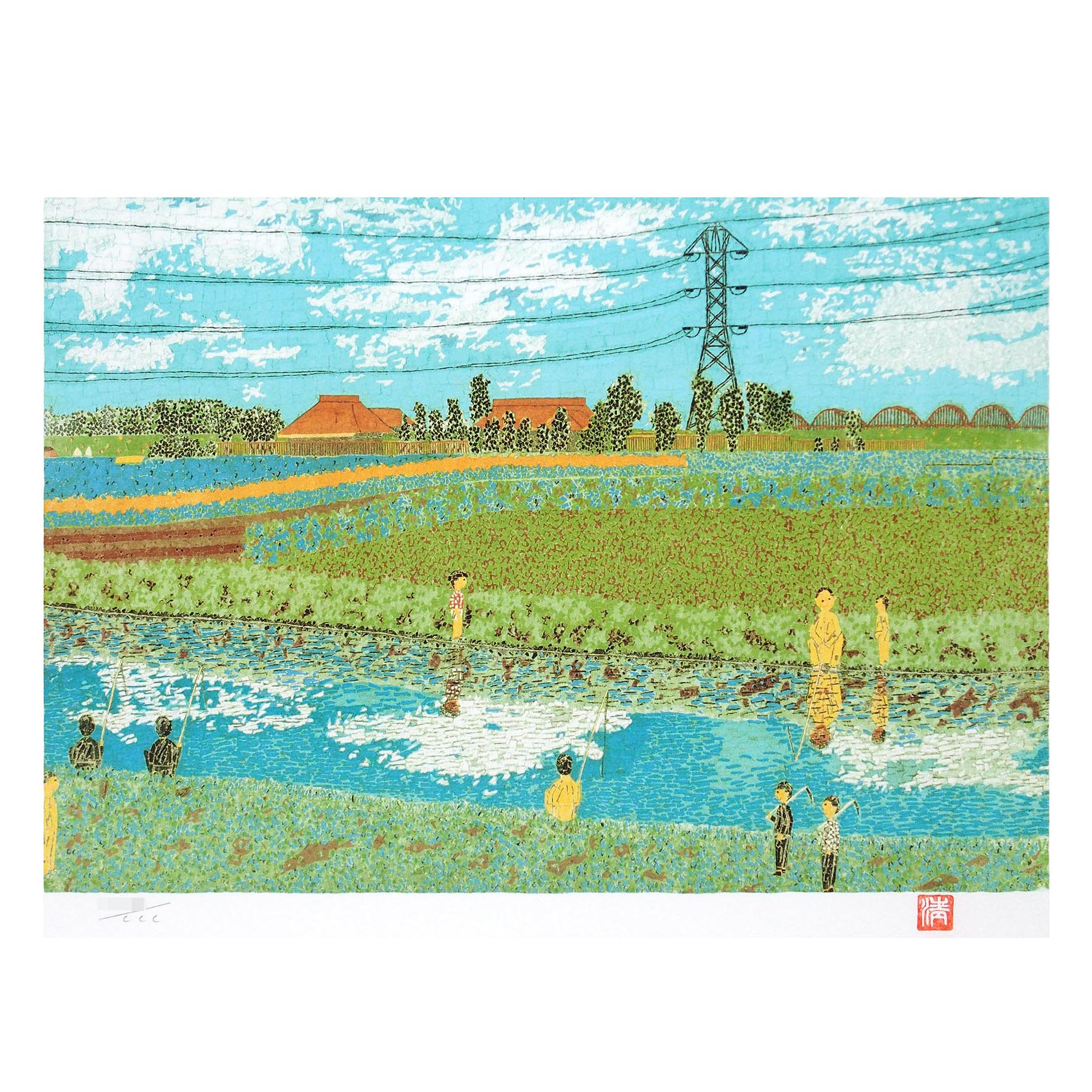 東京都葛飾区金町の風景を描いた作品で、あずま工芸制作のリトグラフです。