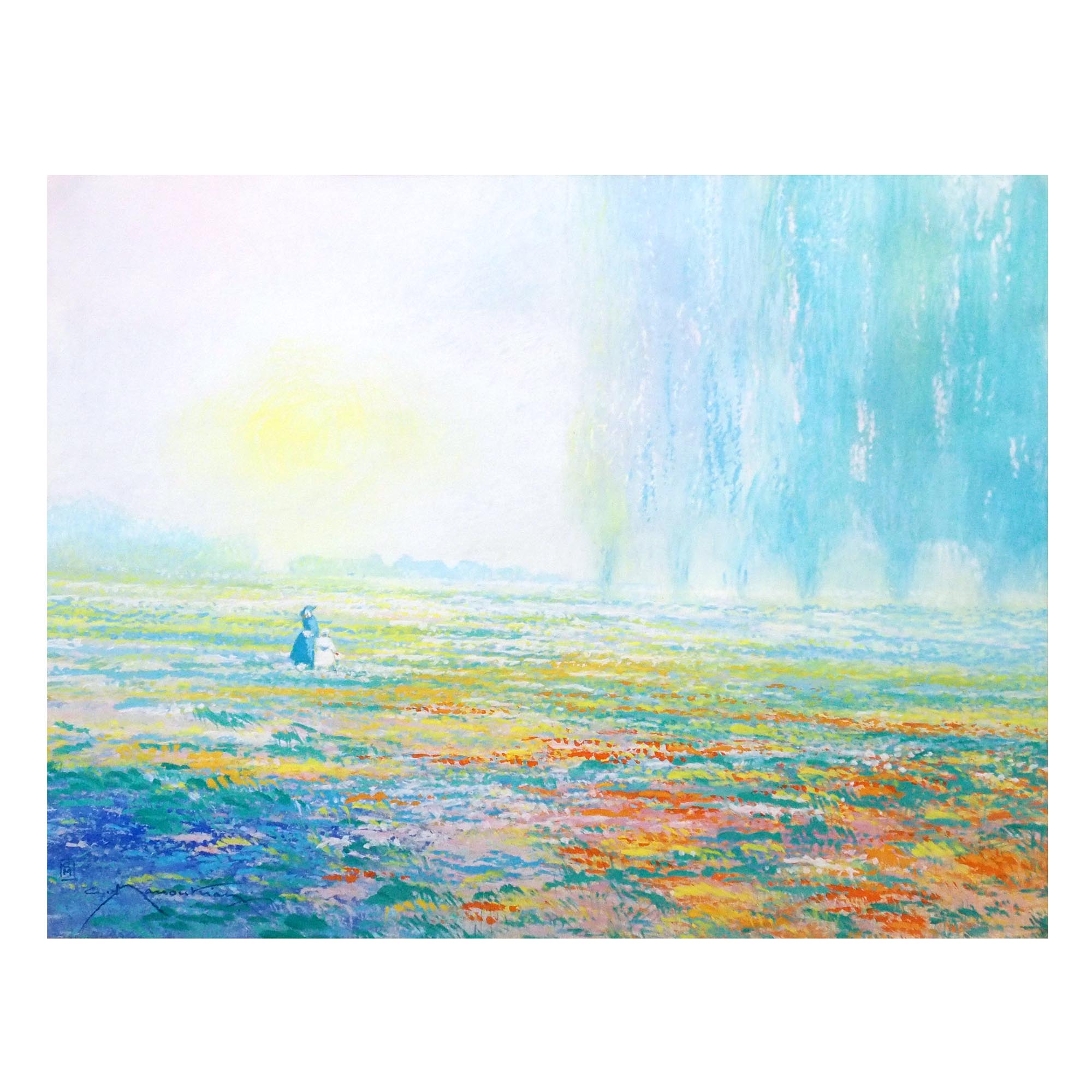 「花畑の散歩道」クロード・マヌキアンによる紙に彩色15号です。