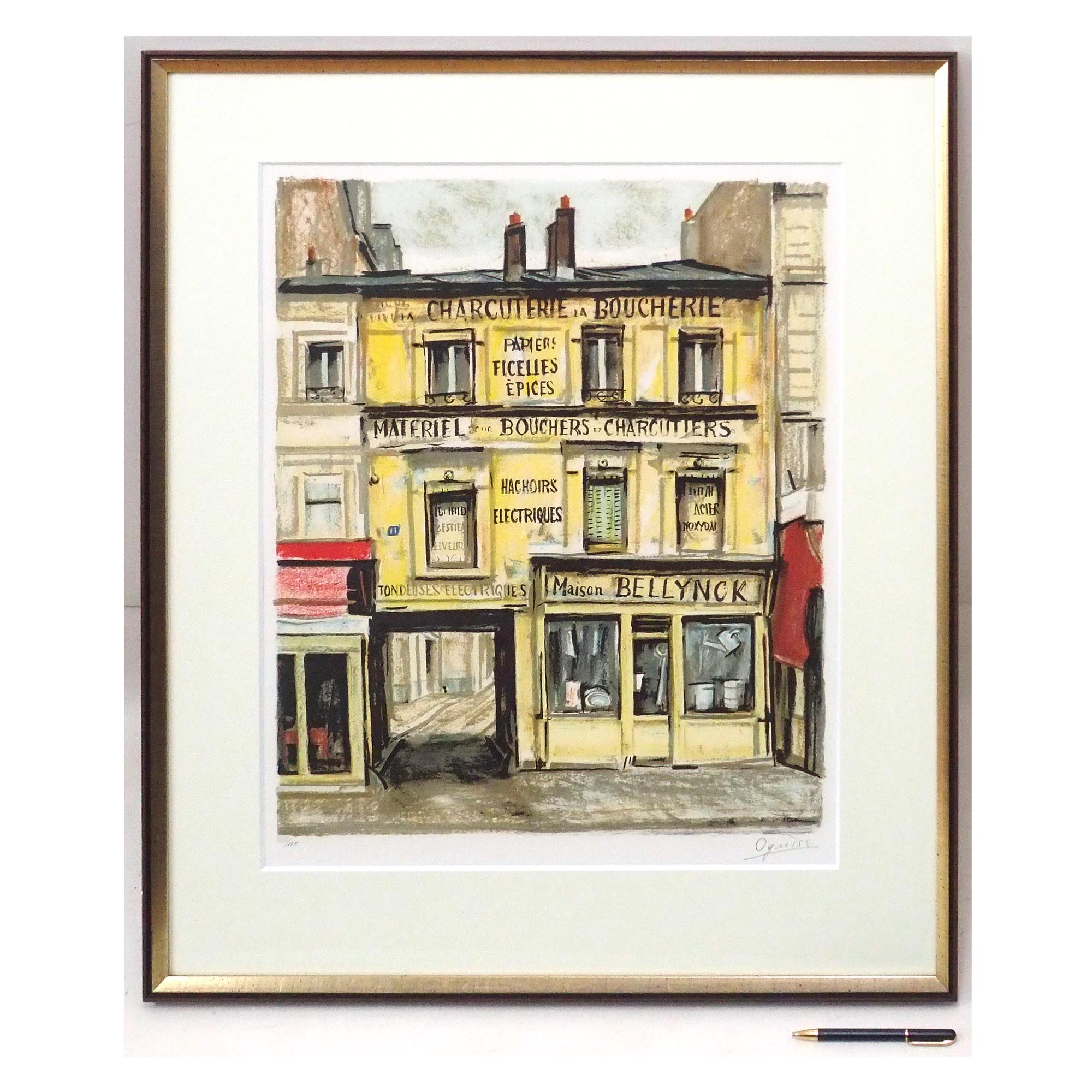 「黄色い店」荻須高徳による1985年作、直筆サイン入りのリトグラフで、「LITHOGRAPHIES et TAPISSERIES 1967-86」No.136掲載作品です。