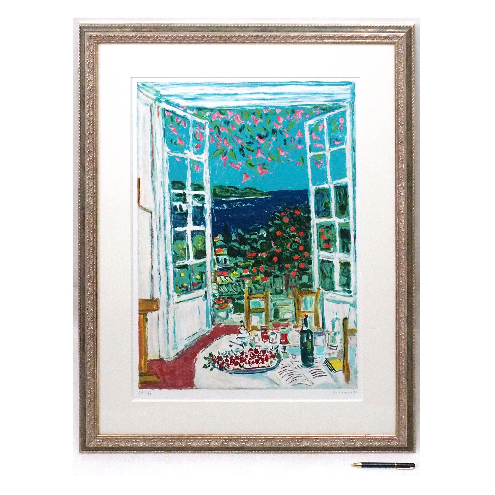 「南仏のテーブル」アンドレ・コタボによる直筆サイン入りのリトグラフです。