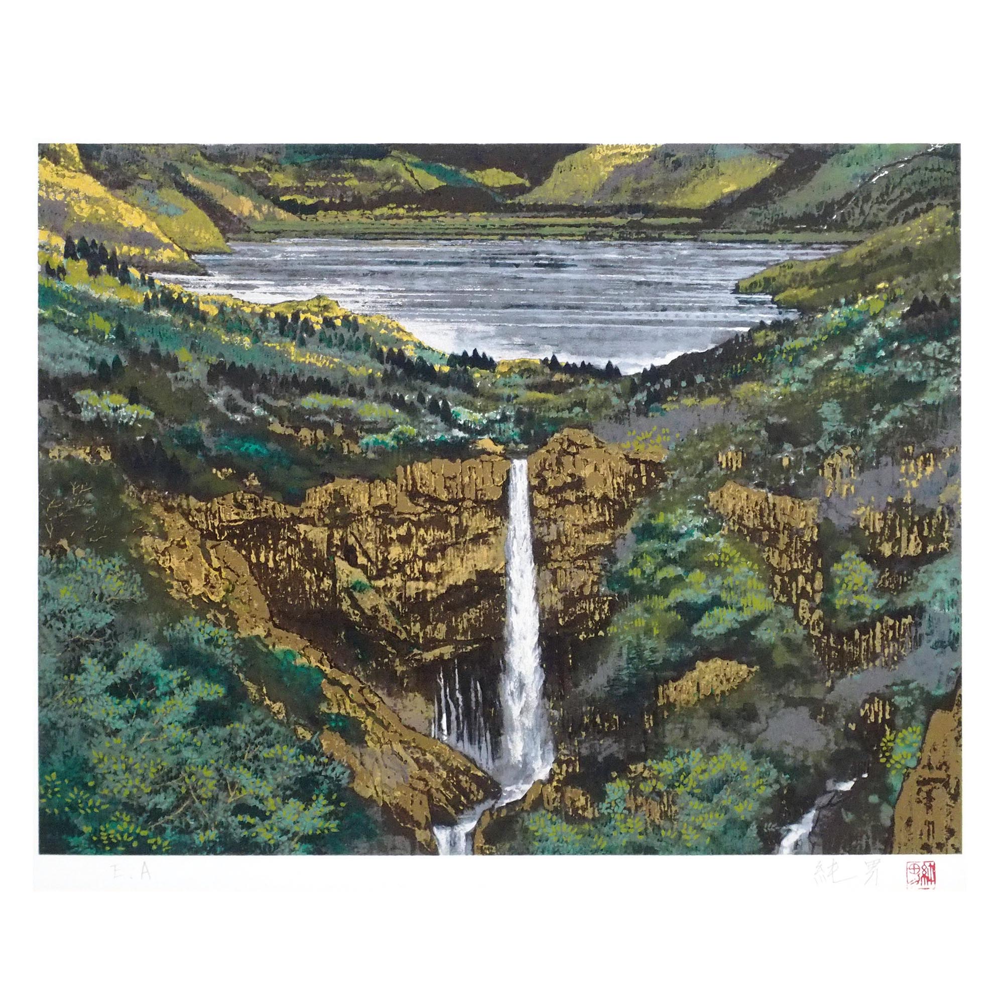 「瀑布」後藤純男による直筆サイン・印有りのリトグラフです。