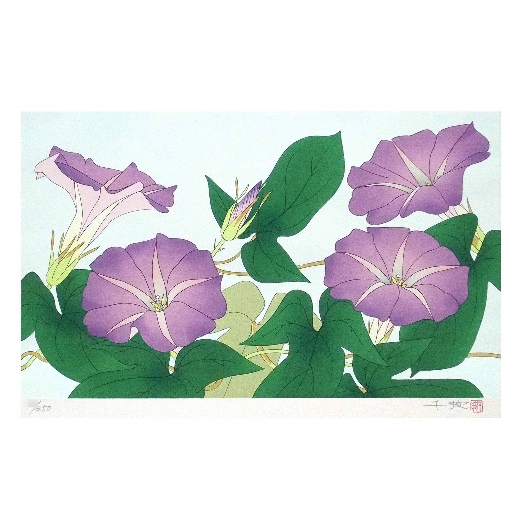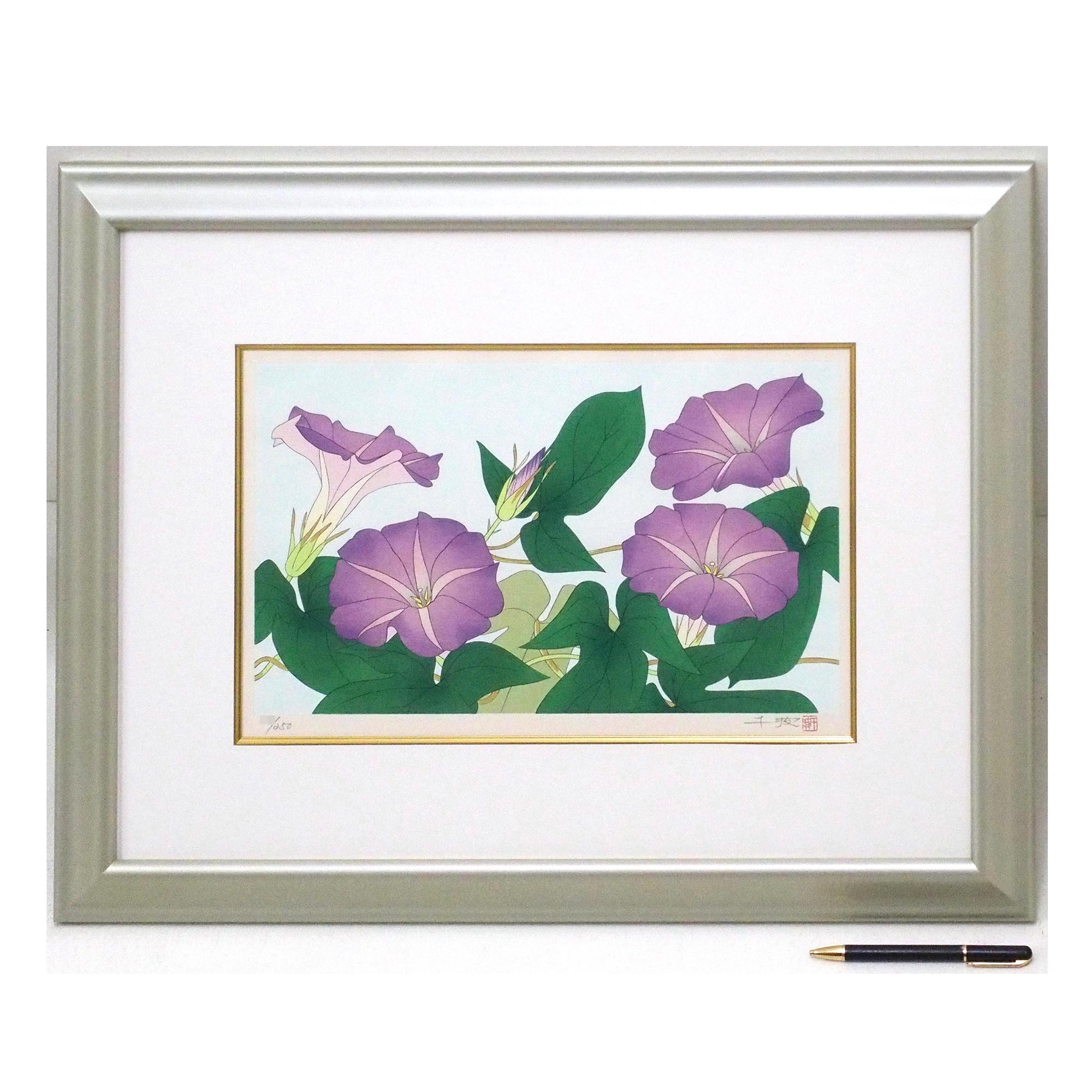 「朝顔」中島千波による直筆サイン・印有りの木版です。