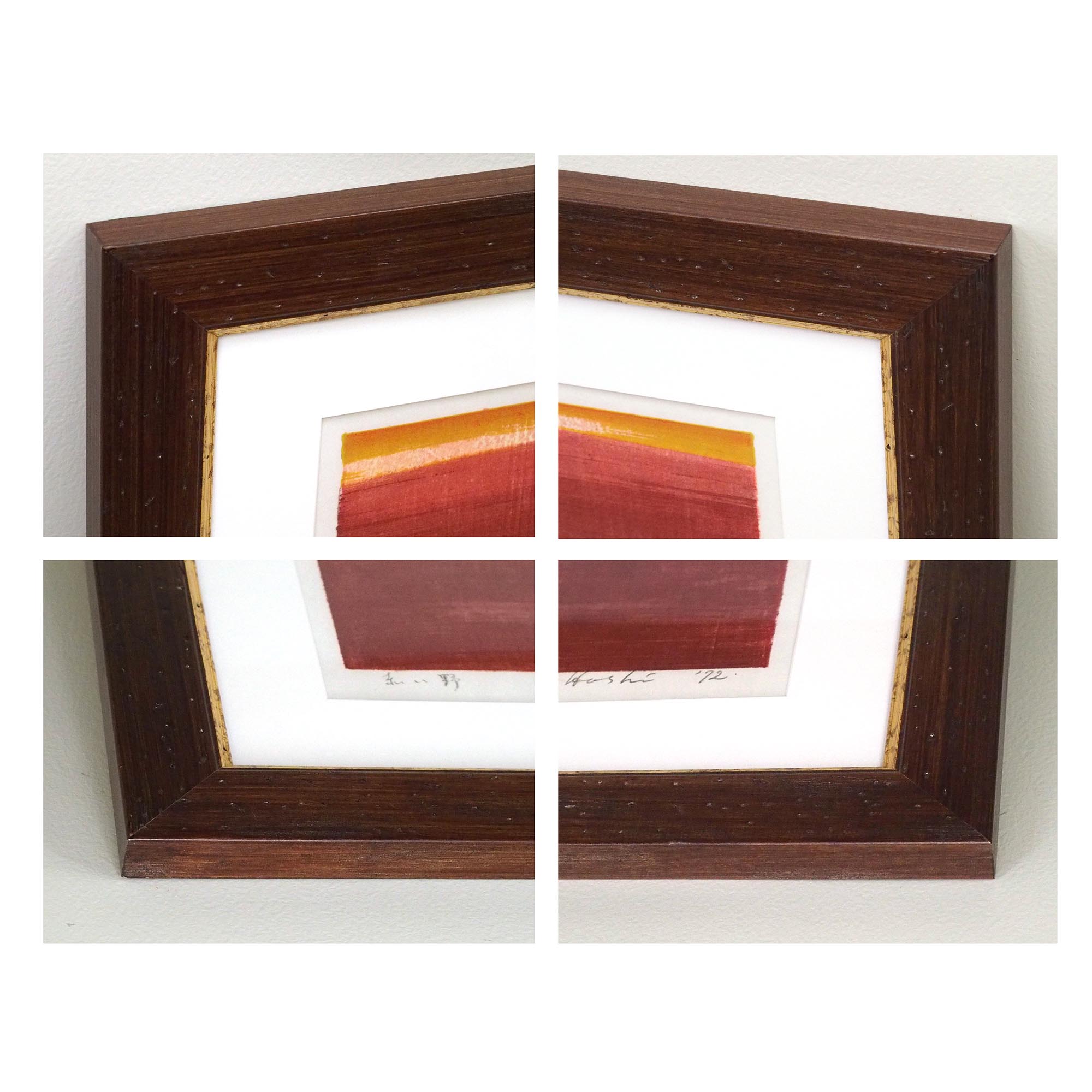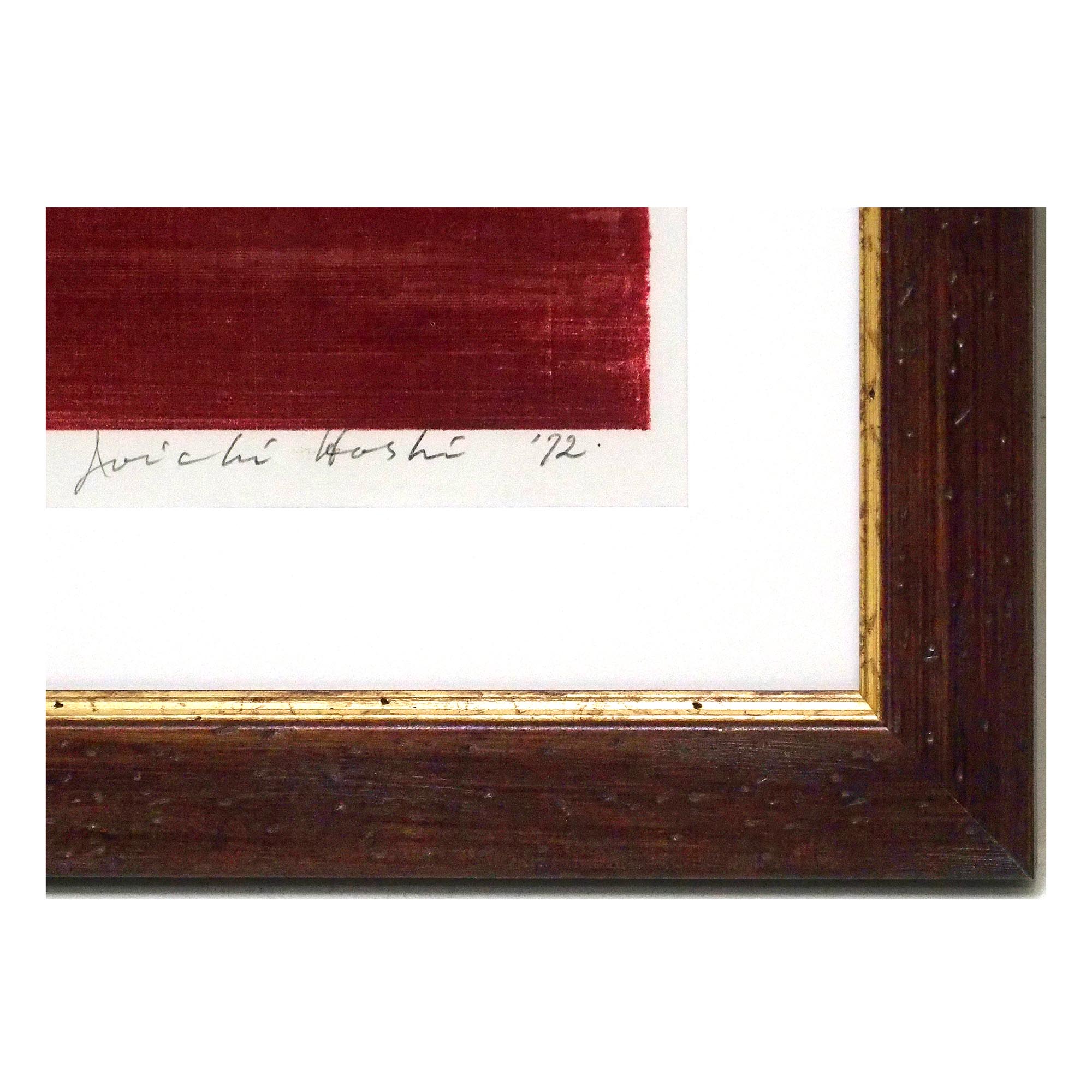 「赤い野」星襄一による1972年作、直筆サイン・印入りの木版画です。