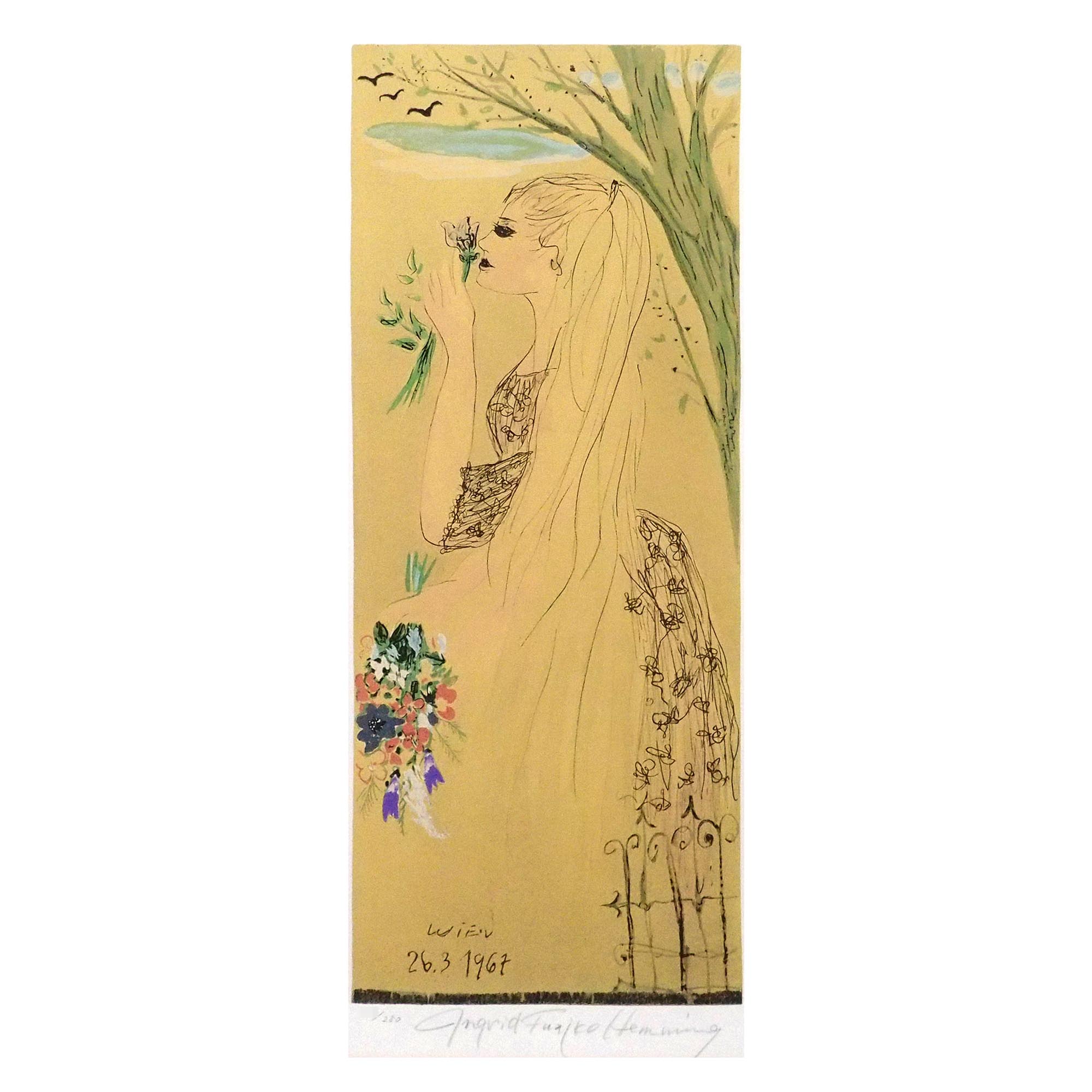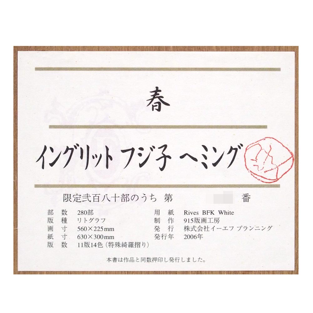 フジ子・ヘミングによる「春」。2006年発行の直筆サイン入りリトグラフ、縦長作品です。