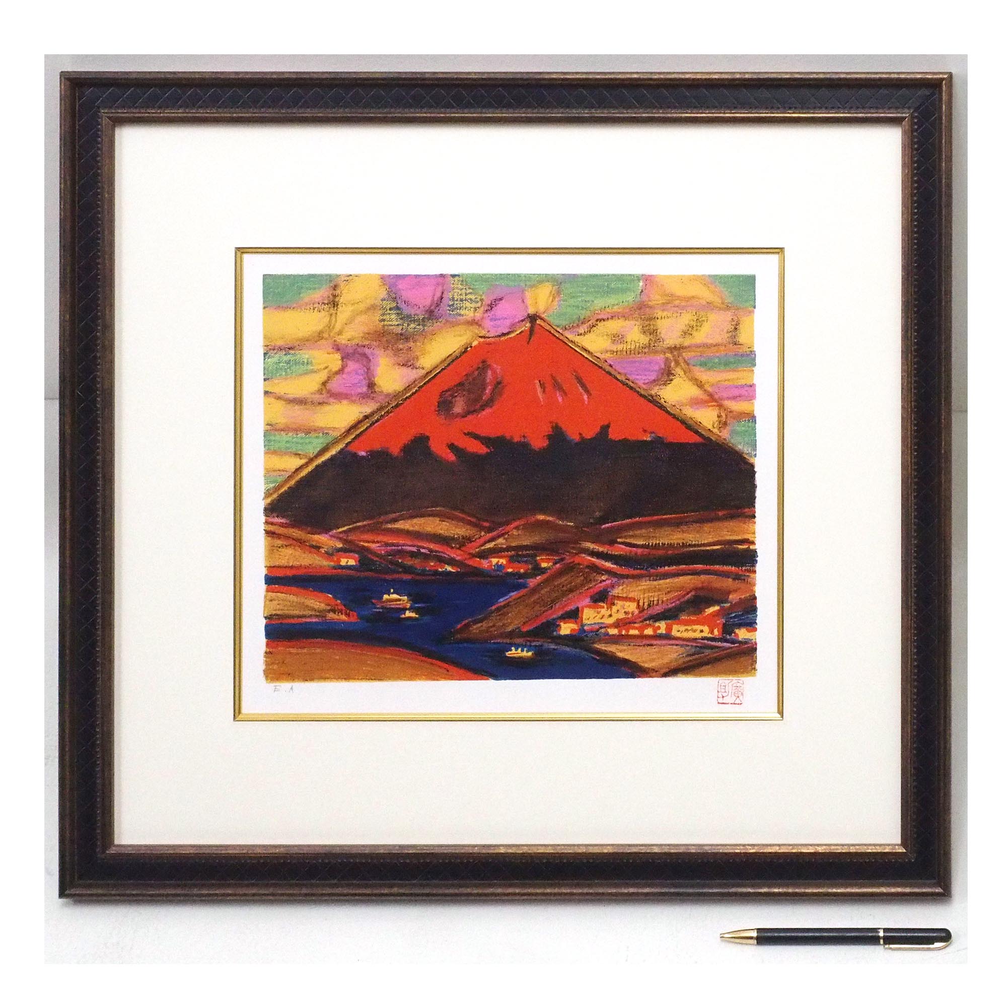 「朱富士(2)」田崎広助による印有りのリトグラフです。