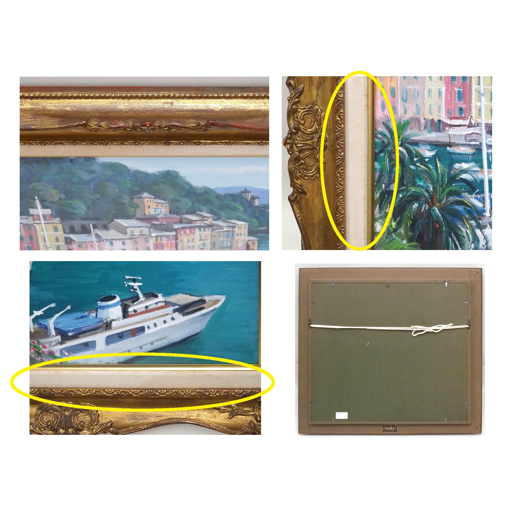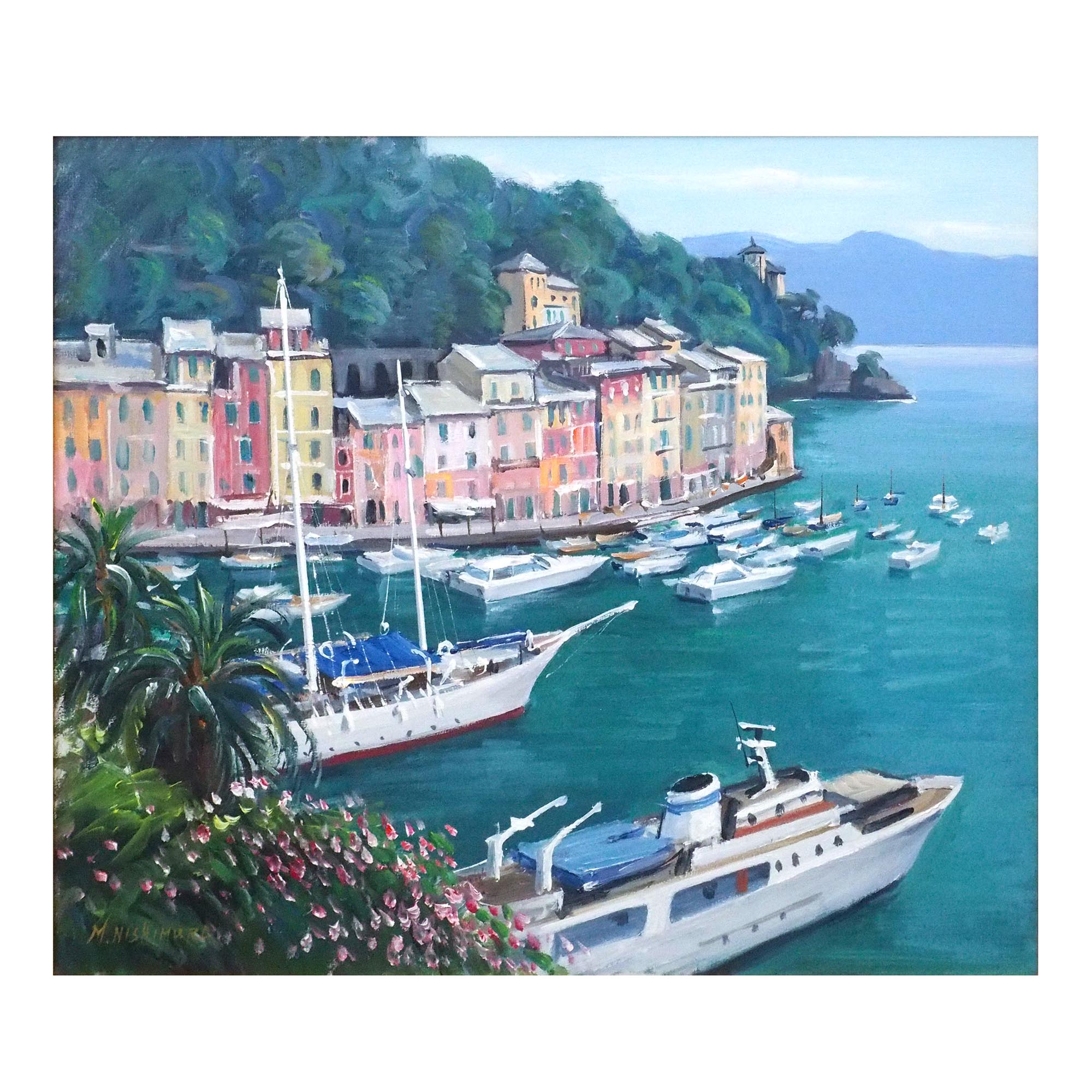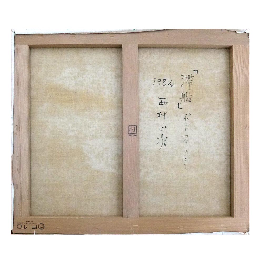 「滞船 ポルトフィーノにて」西村正次による1982年作のキャンバスに油彩10号です。