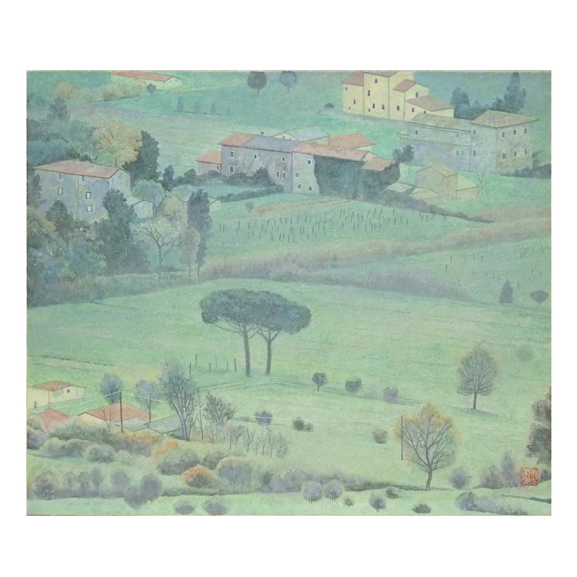 「トスカーナの詩(コルトーナ)」芝康弘による印・共シール有りの紙本彩色8号です。