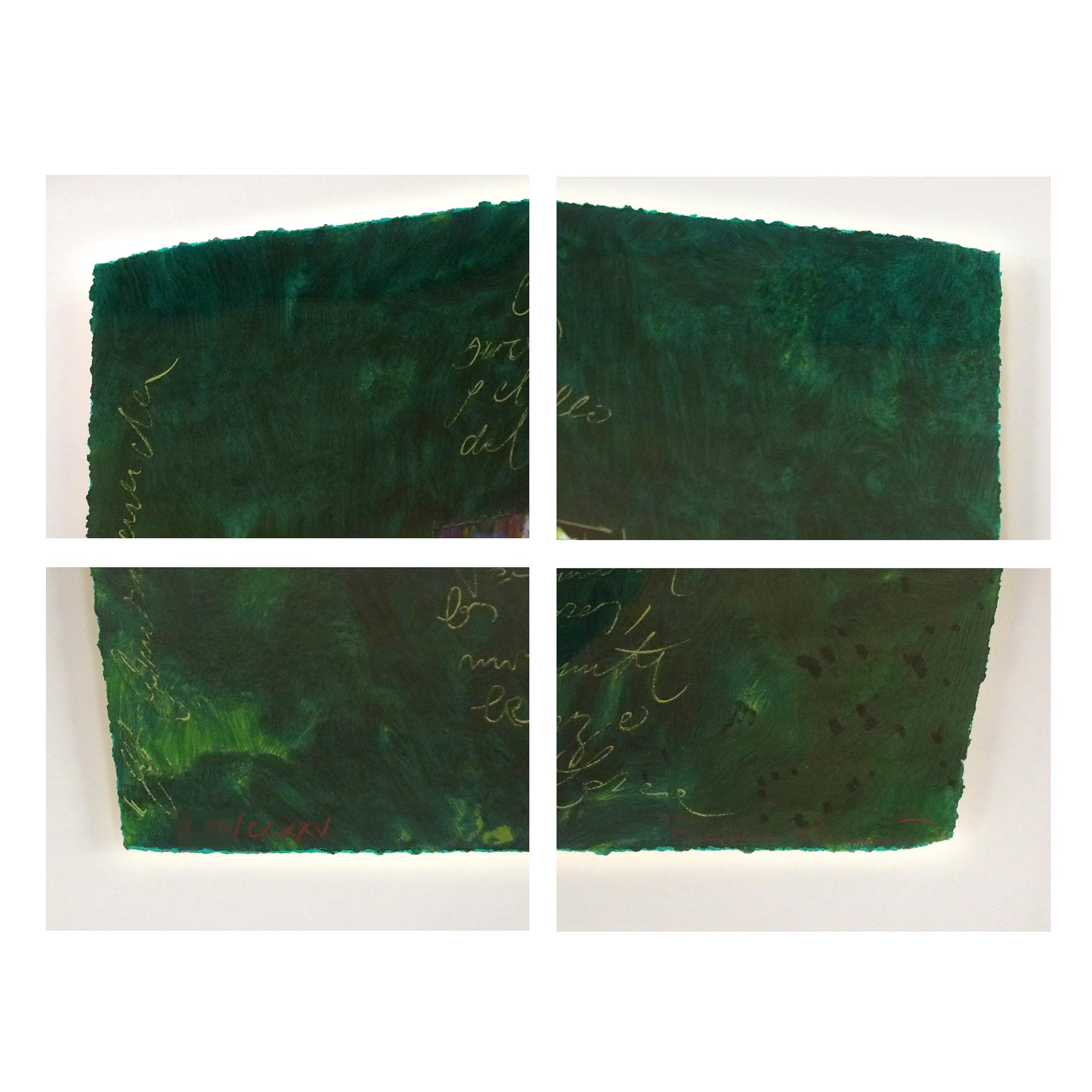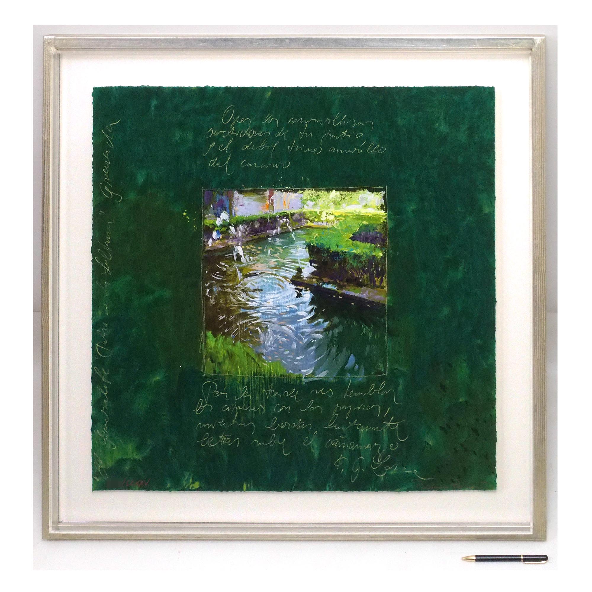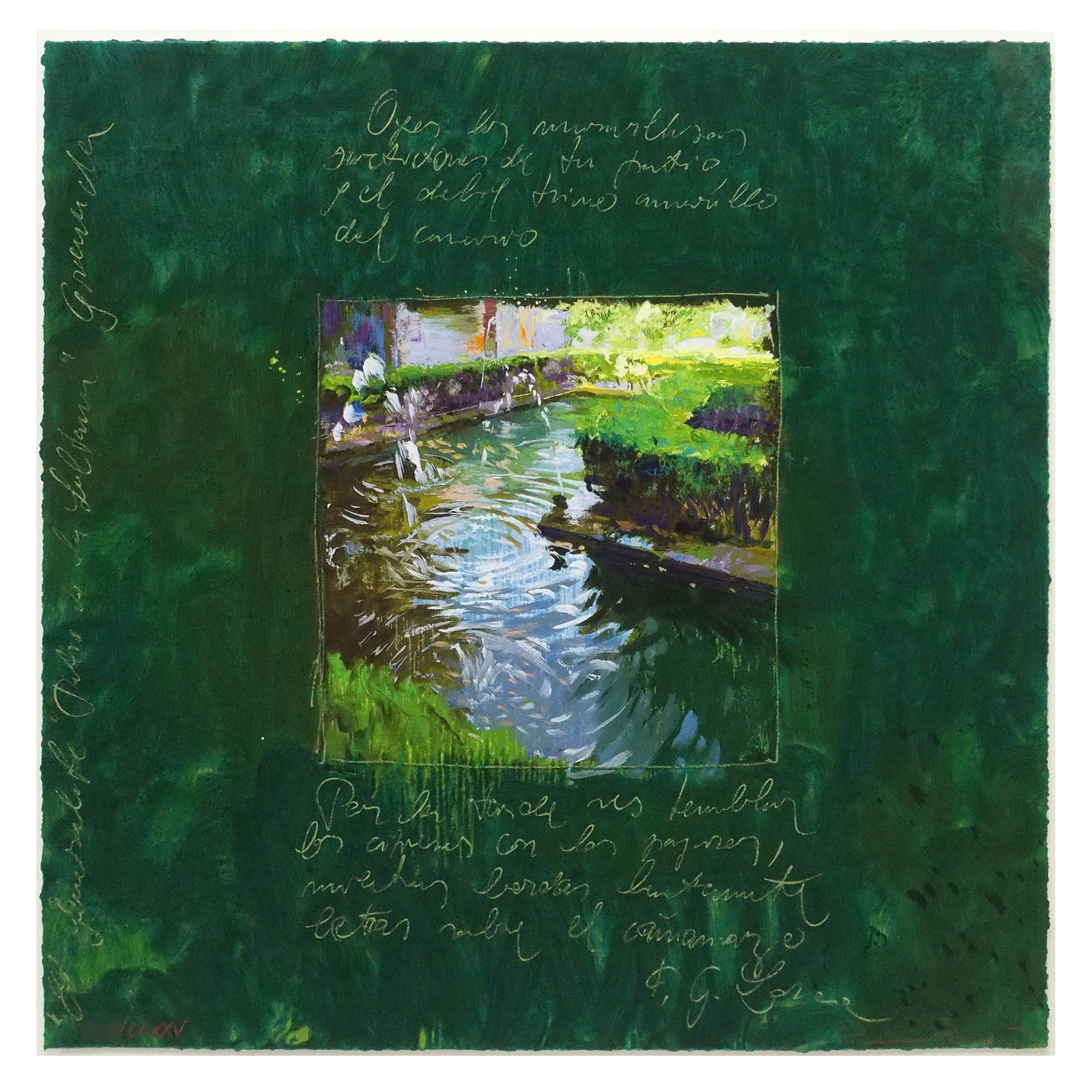 スペインの詩人、フェデリコ・ガルシア・ロルカの詩が刻まれた鮮やかな青緑色が美しい作品です。