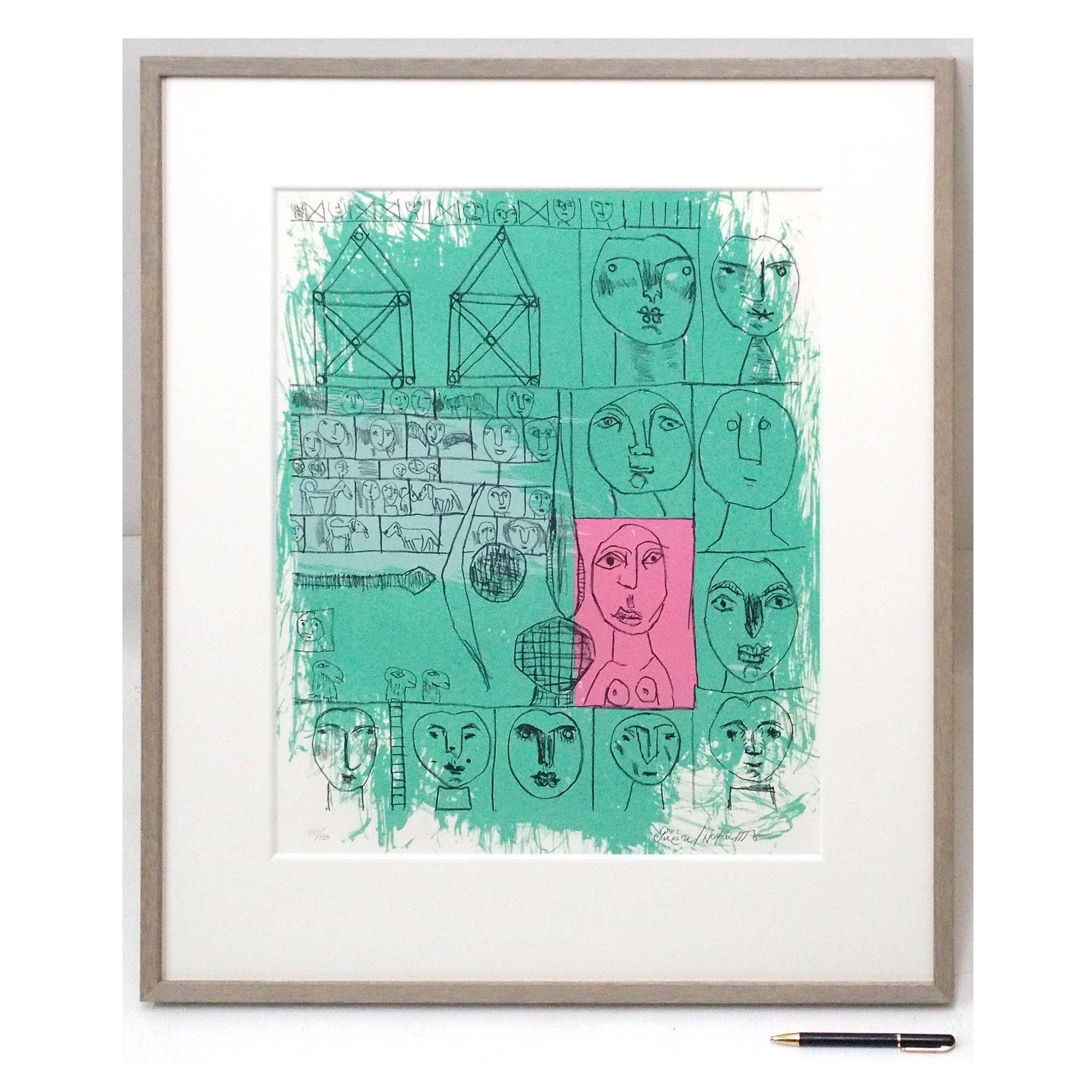 「顔・歌」猪熊弦一郎による直筆サイン入りのリトグラフです。