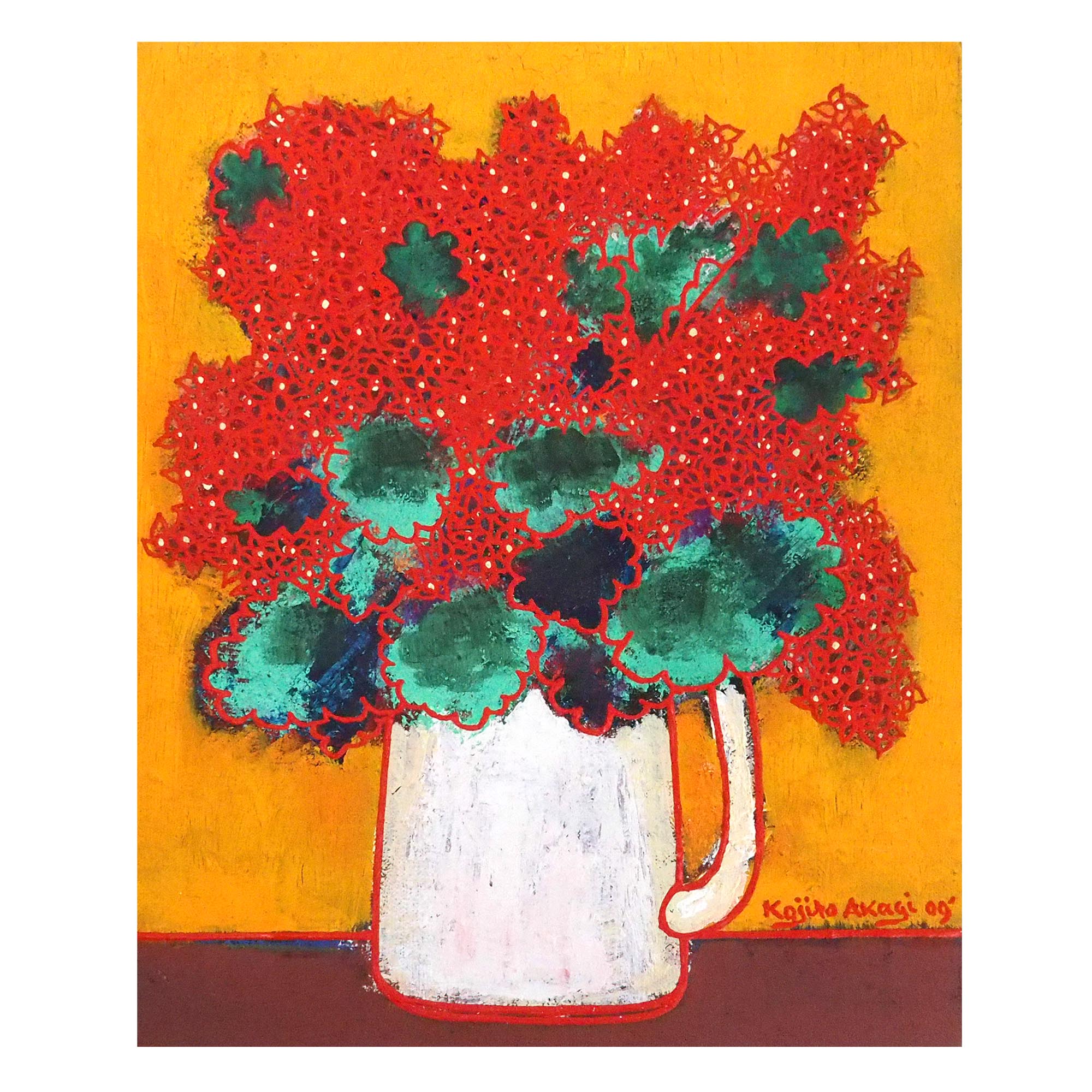 「カランコエ(V)」赤木曠児郎による2009年作のキャンバスに油彩3号、飾りやすいサイズの作品です。