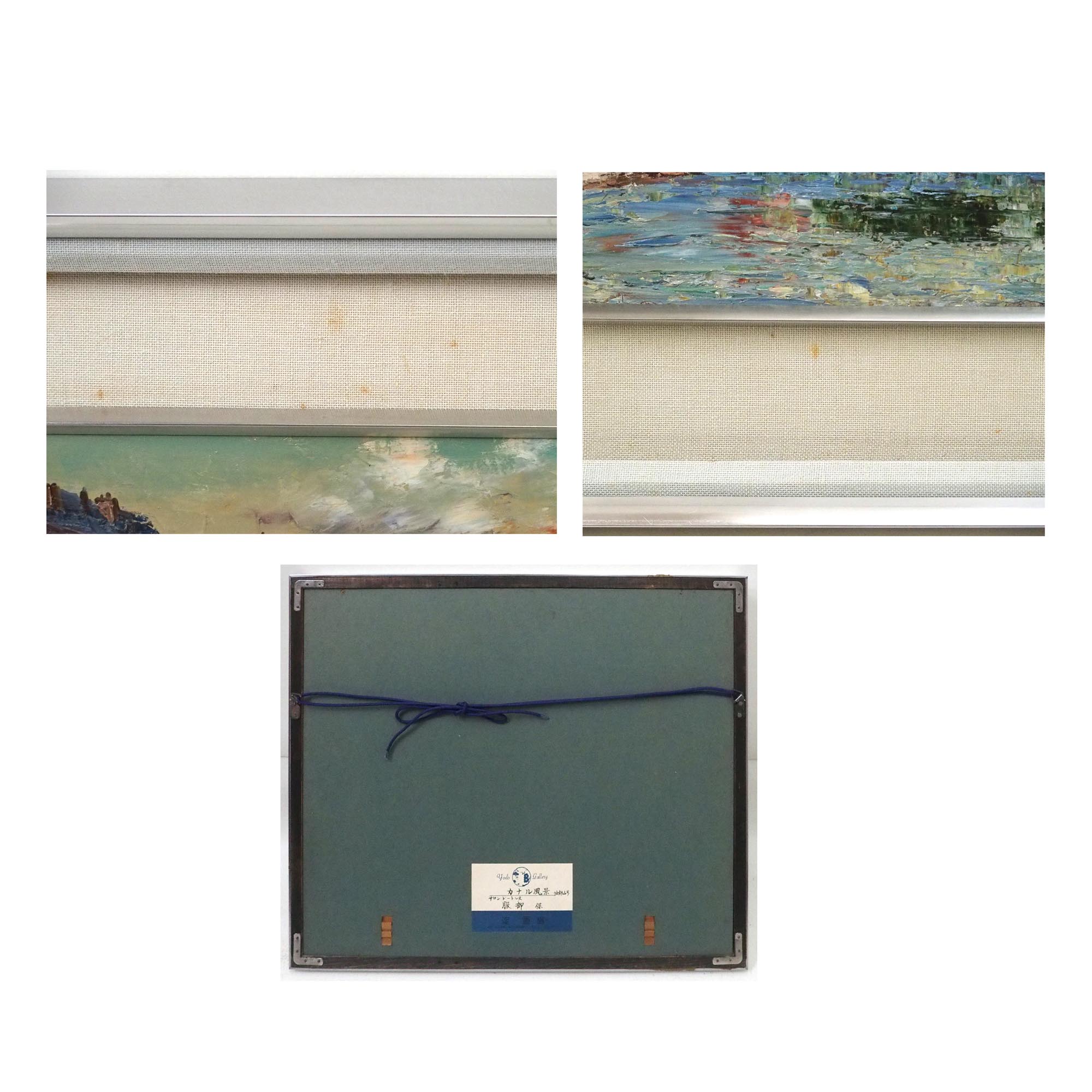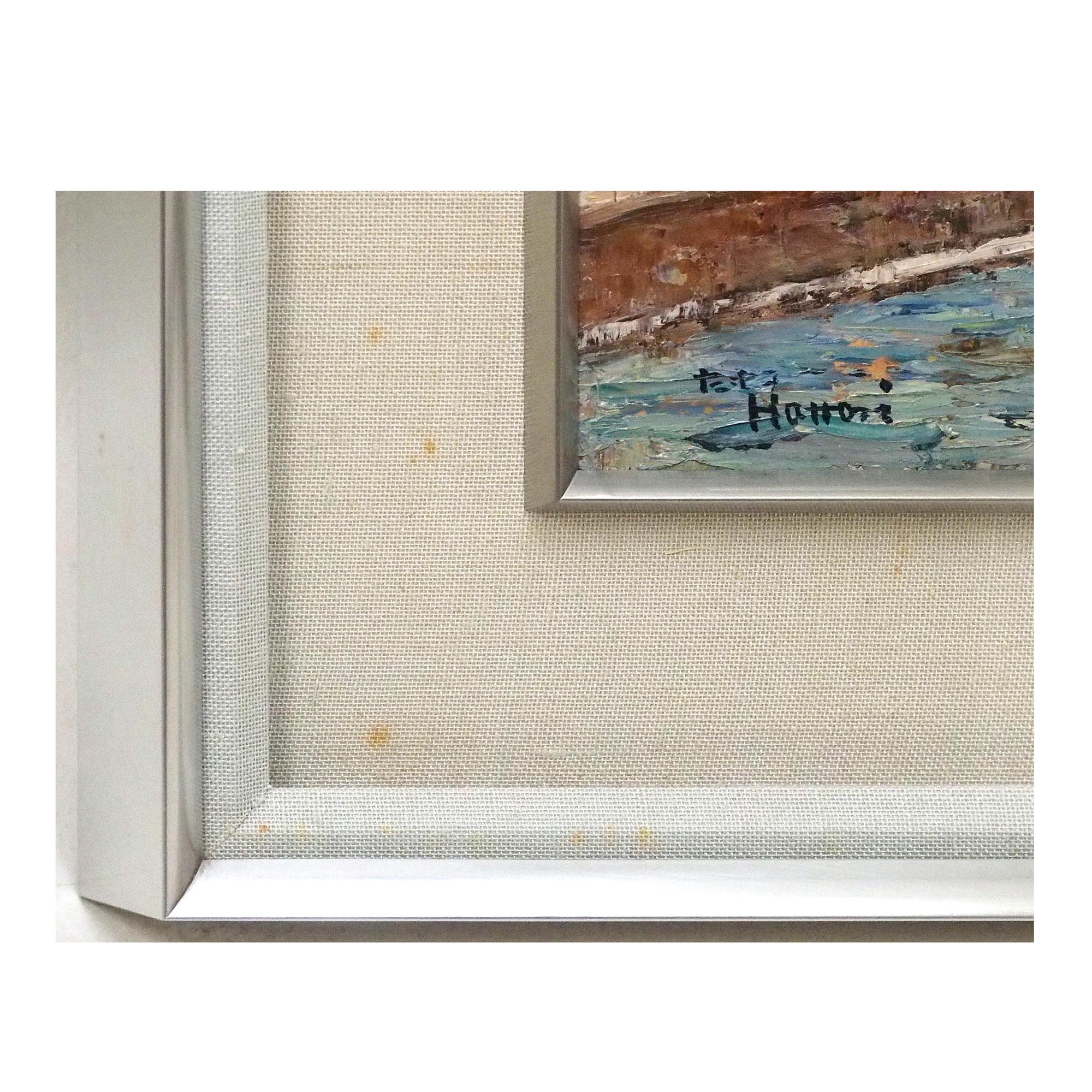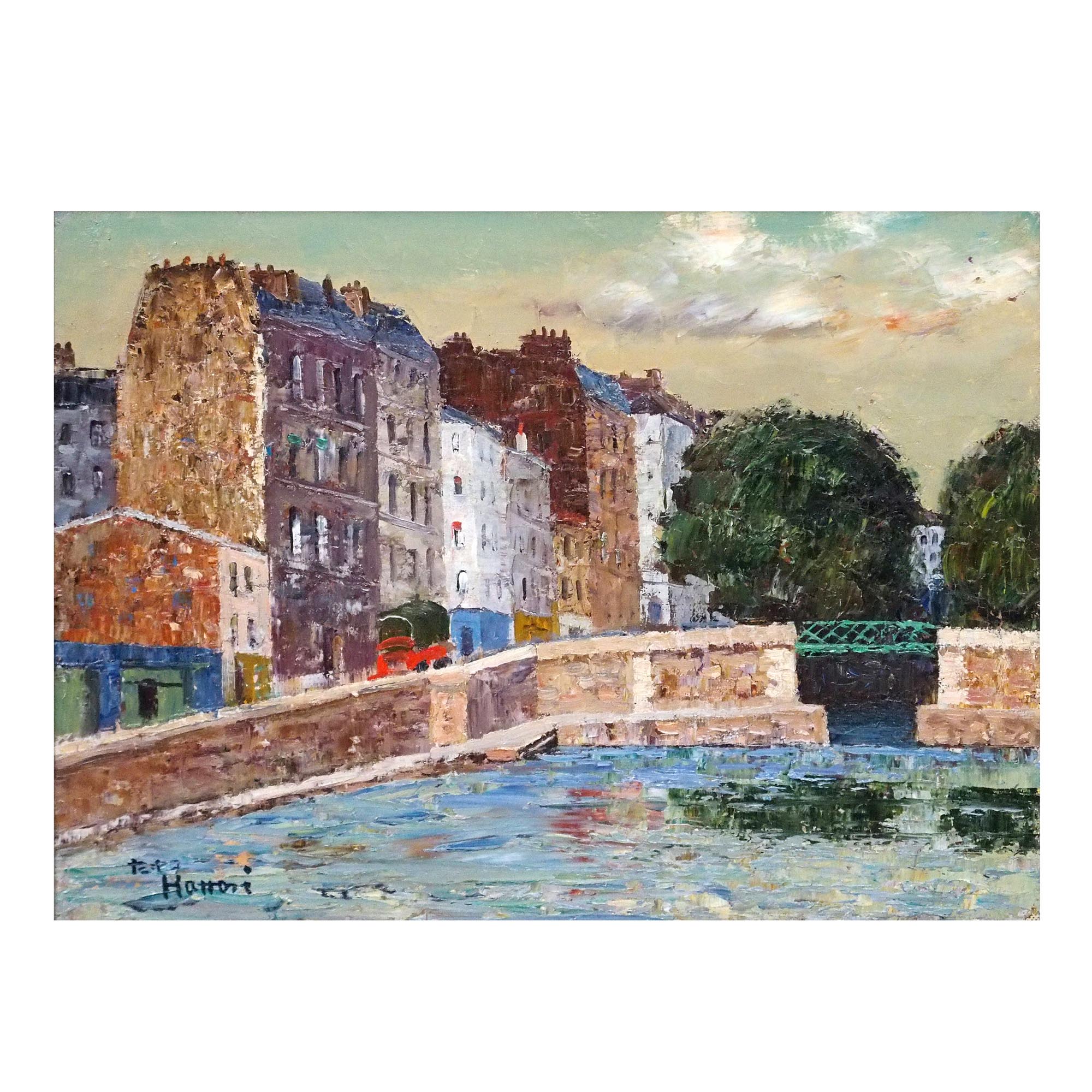 「カナル風景」服部保によるキャンバスに油彩4号で、淀画廊シールがございます。