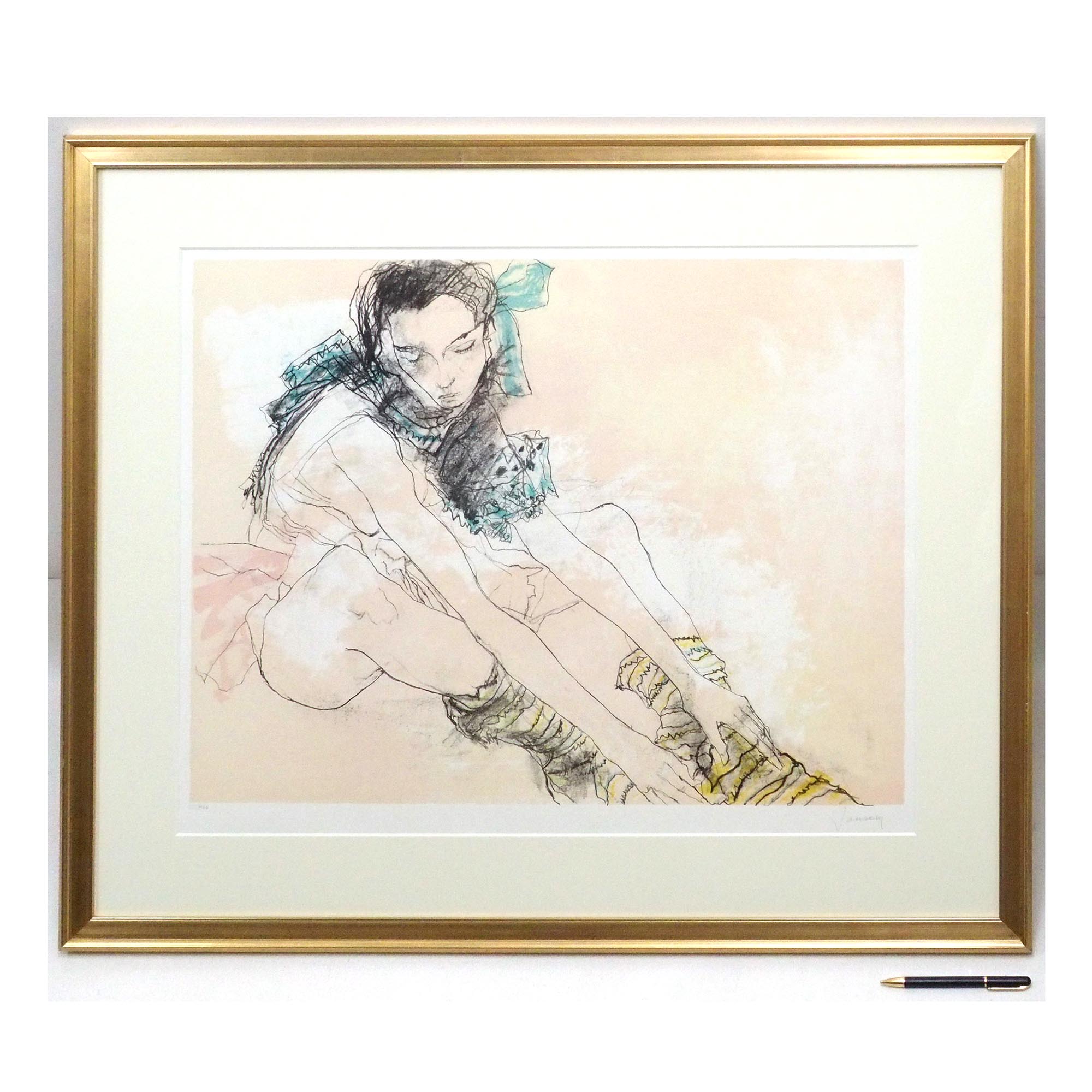 「青いリボン」ジャン・ジャンセンによる1993年作、直筆サイン入りのリトグラフで、「JANSEM LITHOGRAPHE 1984-1993」No.90掲載作品です。