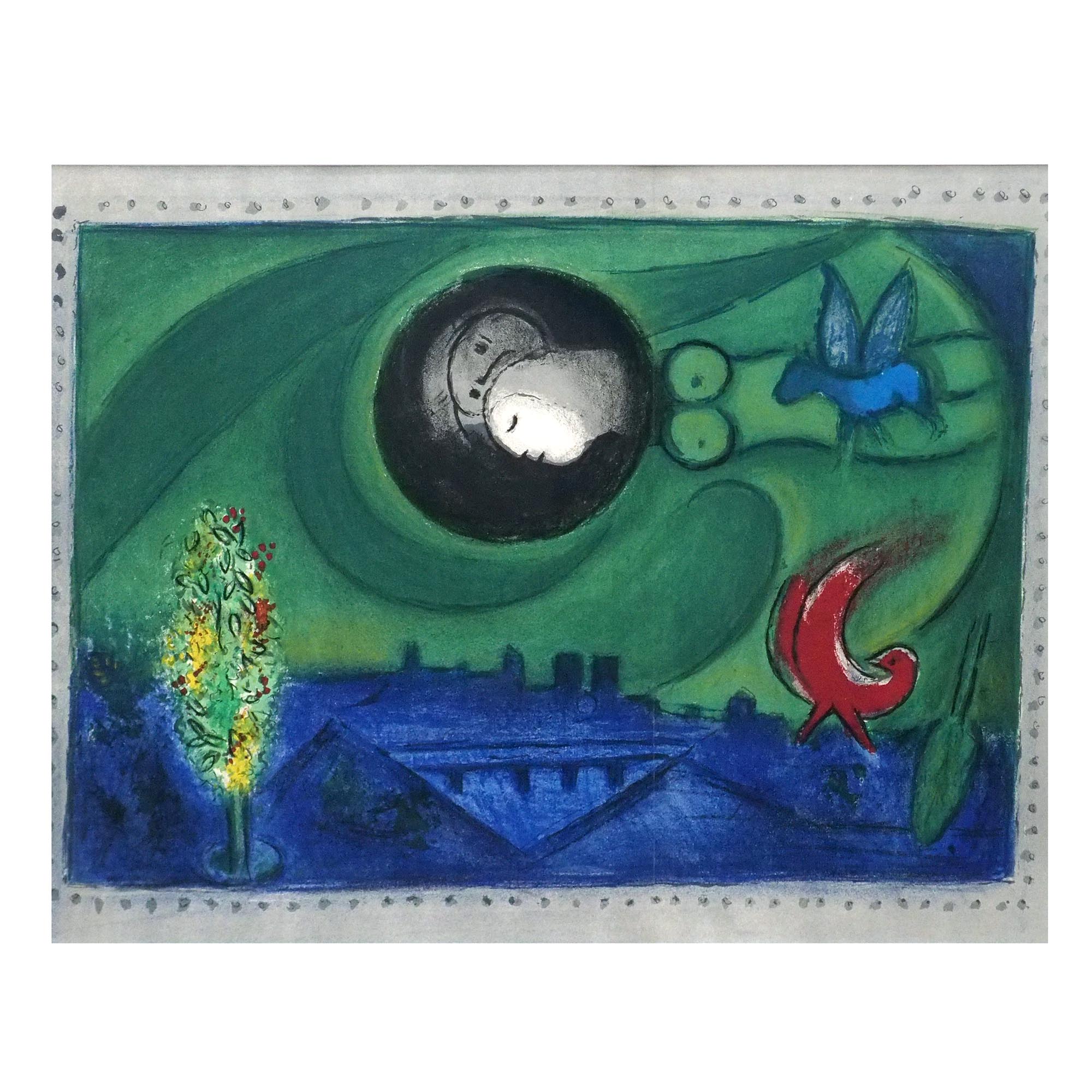1954年に開催された展覧会カタログ「デリエール・ル・ミロワール(D.L.M.)」誌のために制作されたリトグラフのうちの1作です。この『パリ』シリーズは、シャガール作品の中でも人気の連作版画です。